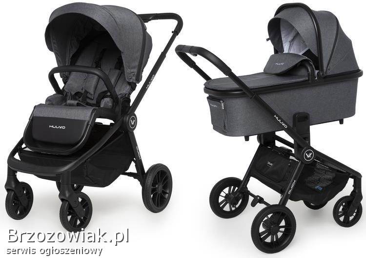 BrzozówSprzedam wózek marki Muuvo Quick 3. 0 chrome iron graphite. Spacerówka plus gondola. Kompletny zestaw: moskitiera, folia na deszcz, śpiworek, torba, dodatkowy m