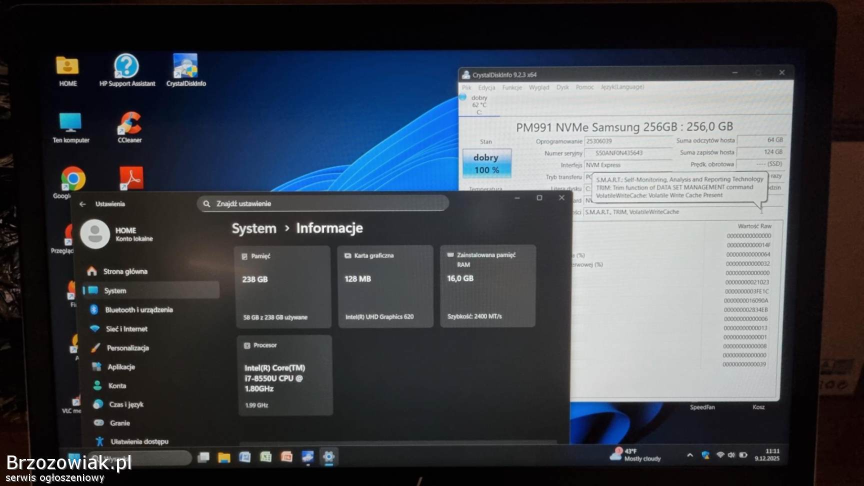 Windows 11 Professional świeżo zainstalowany z wszystkimi sterownikami i podstawowymi programami.