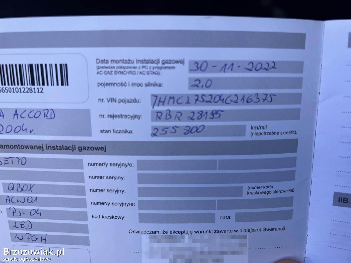 Honda Accord 2. 0 benzyna gaz. Rozrząd wymieniony przy 232900 tj łańcuszek komplet. Sprzęgło wymienione, tarcze klocki olej. Gaz stał 4 założony w 30. 11. 2022 jest na gwarancji. Fakturę posiadam. Przy przebiegu 255800. Auto było konserwowane przed moim zakupem, czyli w 2022. Lekkie poprawki lakiernicze. Auto do jazdy. Cena do negocjacji 16000