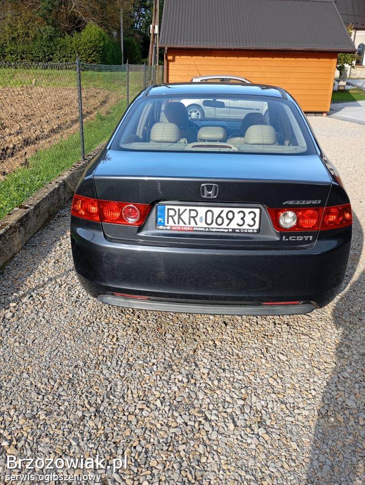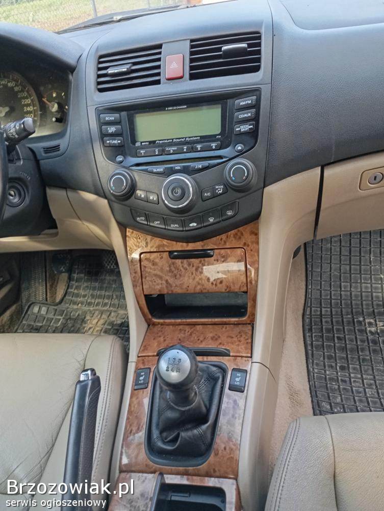 Sprzedam hondę Accord VII z niezawodnym silnikiem 2. 2 diesel o mocy 144 km. Auto jest w dobrym stanie. Auto posiada między innymi podgrzewane, elektrycznie sterowane fotele, podgrzewane lusterka, dwustrefowa klimatyzacje, ABS, ESP Posiada również skórzane fotele w jasnym kolorze. Auto jest na letnich oponach, dorzucam drugi komplet felg z oponami zimowymi. Auto w posiadaniu od 10 lat. Po więcej informacji zapraszam pod numer telefonu 5x3x7x2x3x1x9x6x5 albo 6x6x7x3x9x9x2x0x3