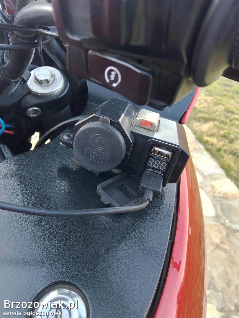 Wyposażenie: bagażnik, kufry, lusterka, szyba motocyklowa, rozrusznik elektryczny, stopka centralna