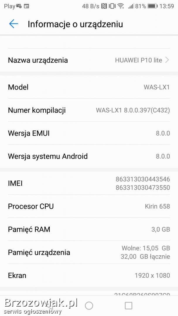 BrzozówSprzedam telefon Huawei P 20 lite. 4 GB RAM.