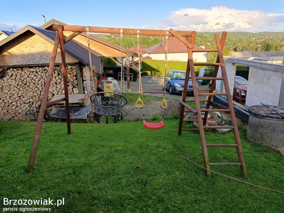Sprzedam huśtawkę widoczną na zdjęciach wraz ze wszystkimi dodatkami jakimi są trapez, gniazdo oraz siedzisko.