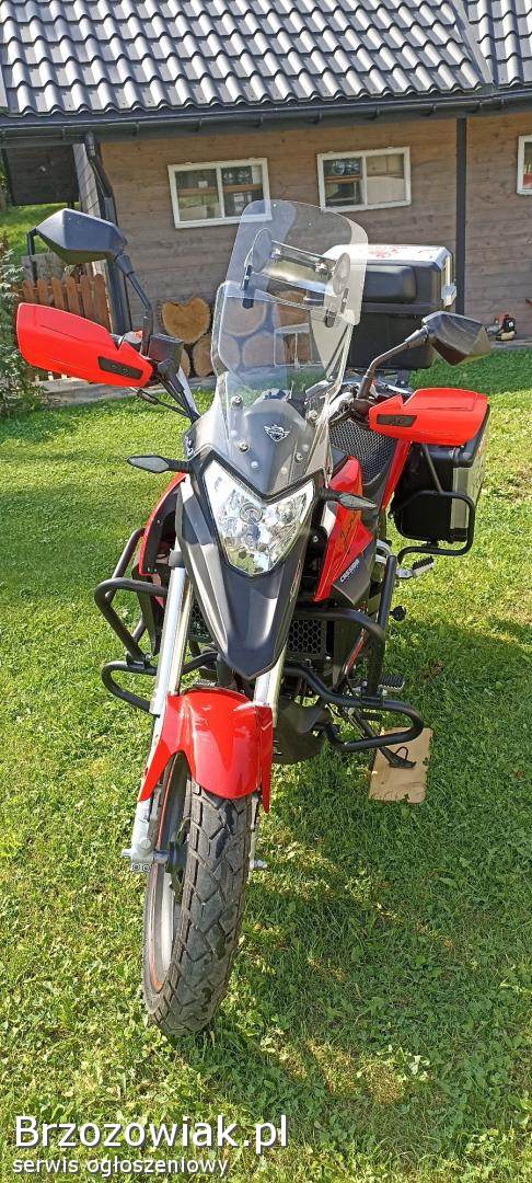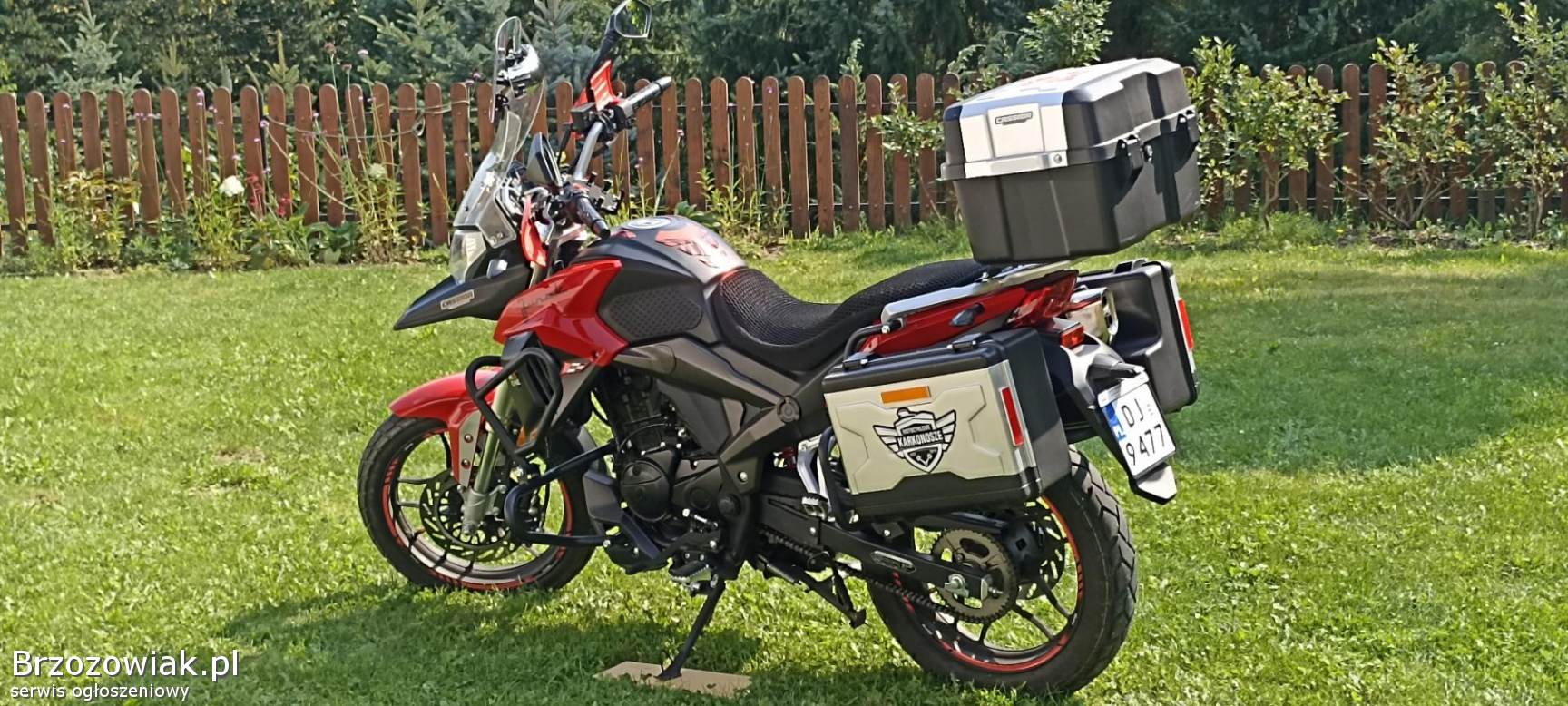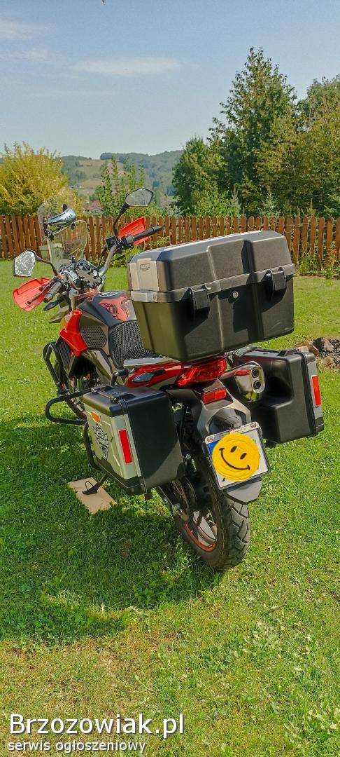 Wyposażenie: bagażnik, kufry, lusterka, szyba motocyklowa, rozrusznik elektryczny, katalizator, stopka centralna