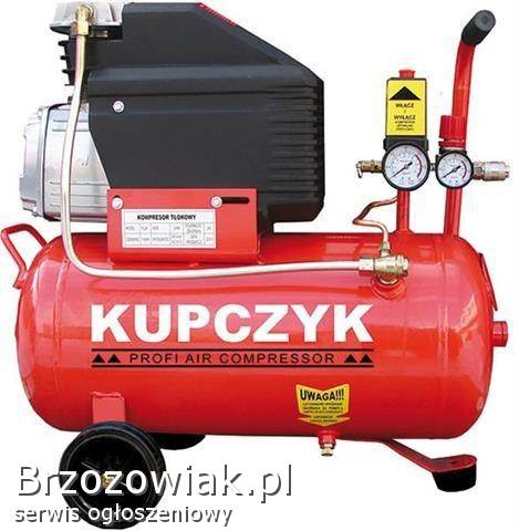 Jednocylindrowa sprężarka tłokowa smarowana olejem o jednym stopniu sprężania wyposażona w:
