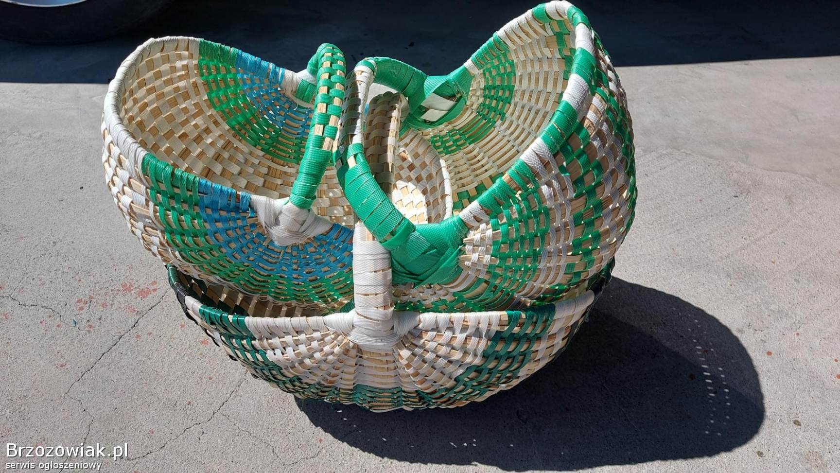 Sprzedam nowe kosze wykonane z drewna i kolorowych pasków. Takie połączenie gwarantuje trwałość i sporą wytrzymałość. . . Ręcznie robione z taśmą ozdobną. . Duży kosz cena 100 zł. Średni 80 zł mały 60 zł. . . Więcej informacji pod numerem telefonu. .