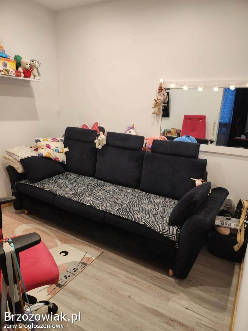 Wygodna, rozkładana sofa w bardzo dobrym stanie. Posiada pojemnik na pościel oraz funkcję spania. Idealna do salonu lub pokoju gościnnego. Prezentuje się estetycznie i jest w pełni sprawna. Całkowita długość 225 cm. Po rozłożeniu 140 x 200.