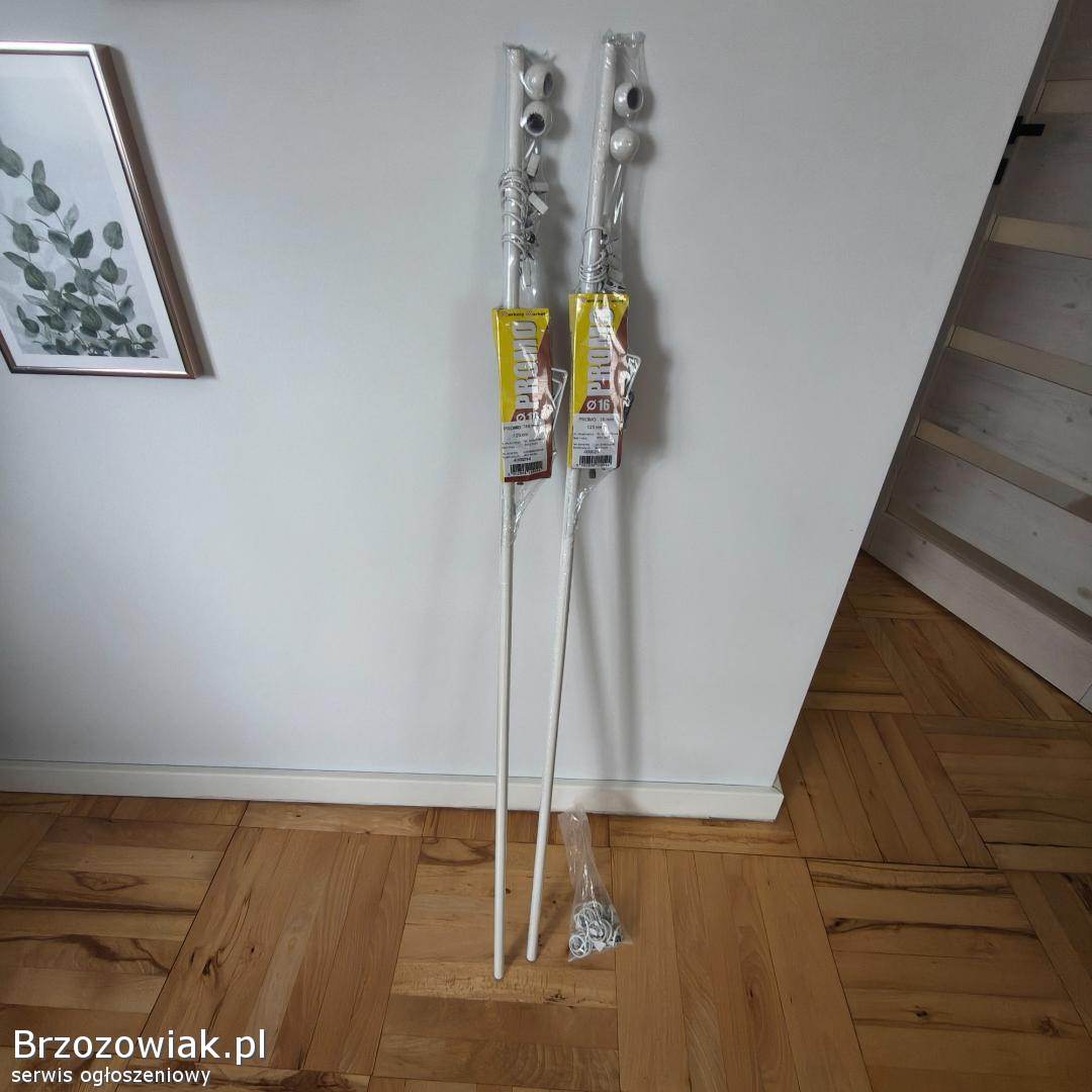 Sprzedam dwa nowe białe karnisze 120cm dlugosci rurka fi16 + dodatkowe żabki