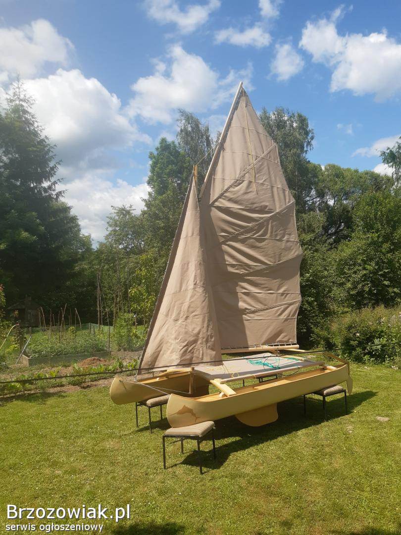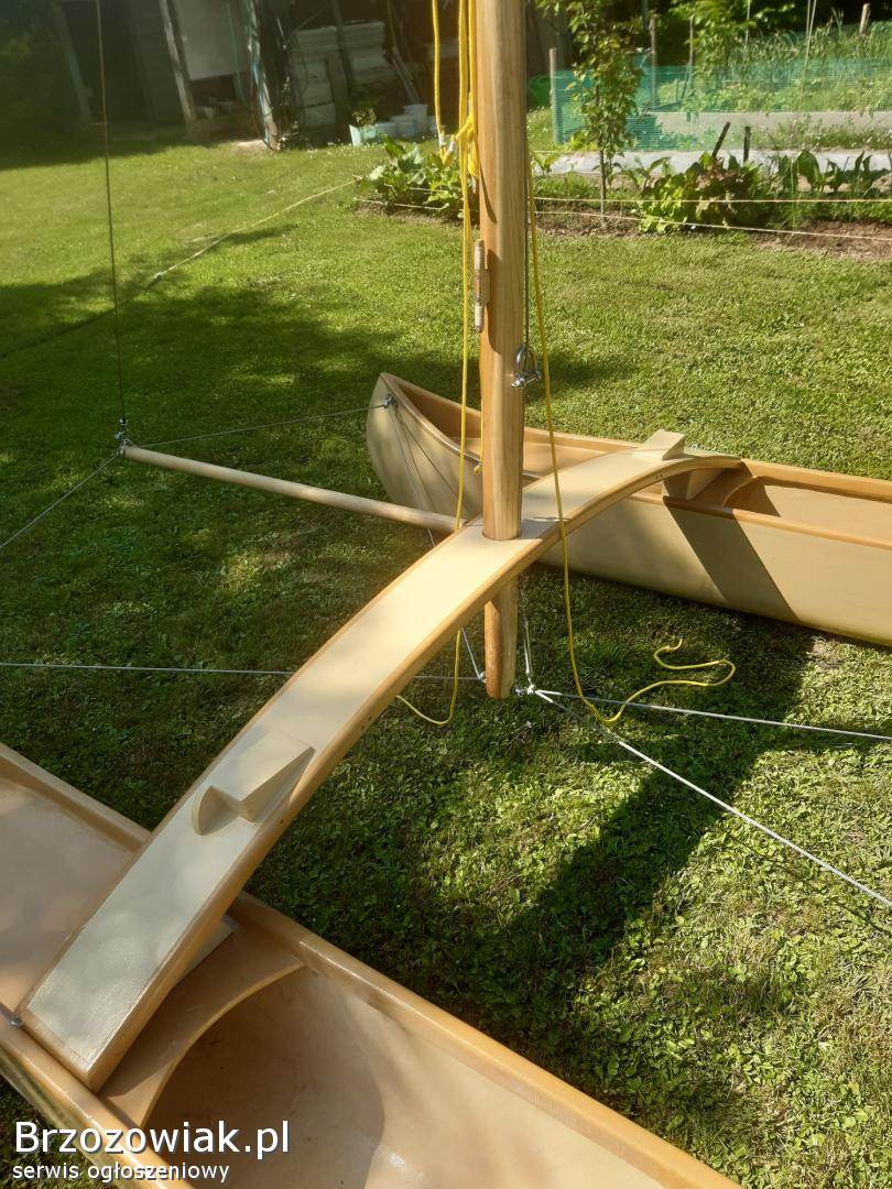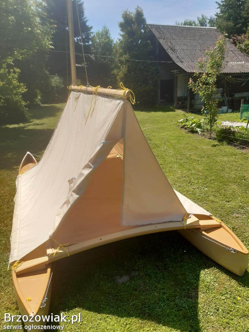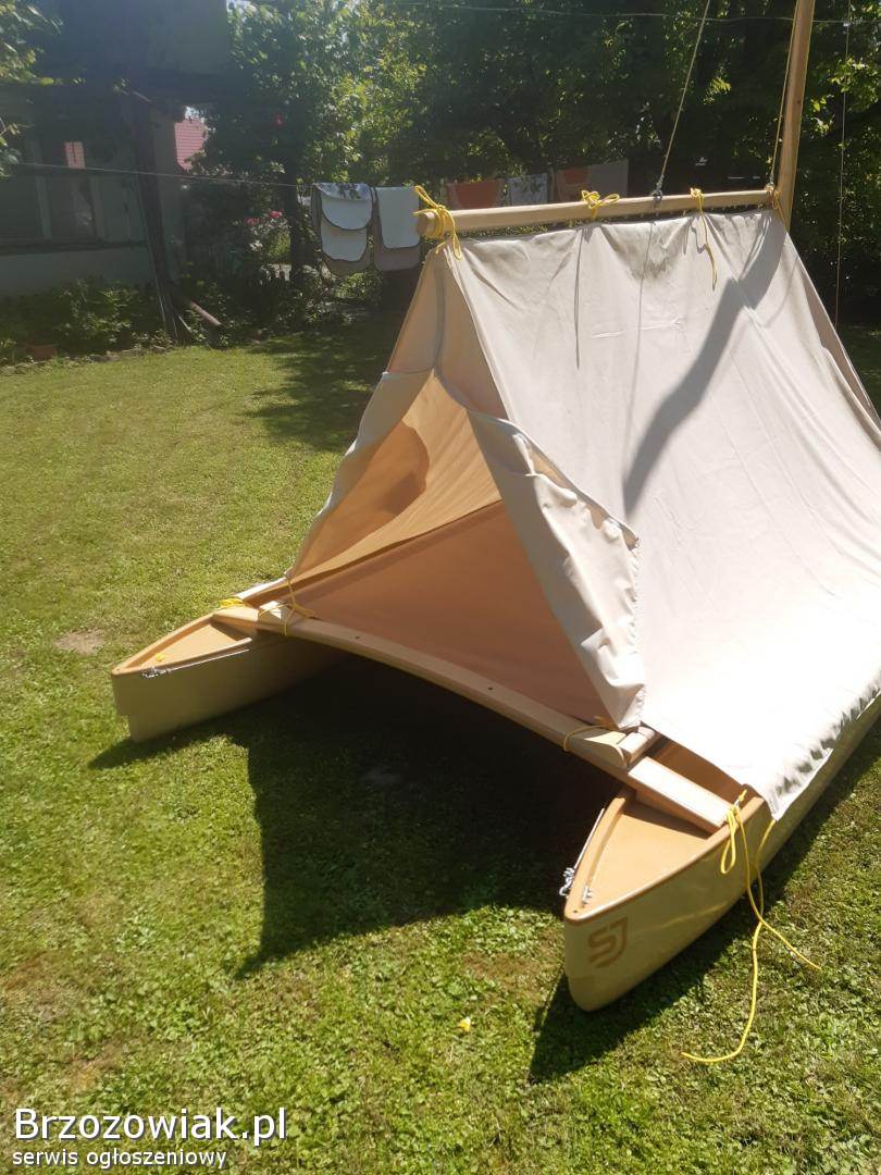 Mini katamaran z namiotem. Łódka ma 3, 5 m długości 1, 8 szerokości około 6 m2 żagla. Jest składana do transportu. Warzy 79 kg. Możliwość dokupienia przyczepki transportowej przystosowanej do roweru motoru skuter lub kładą. Waga przyczepki 32 kg