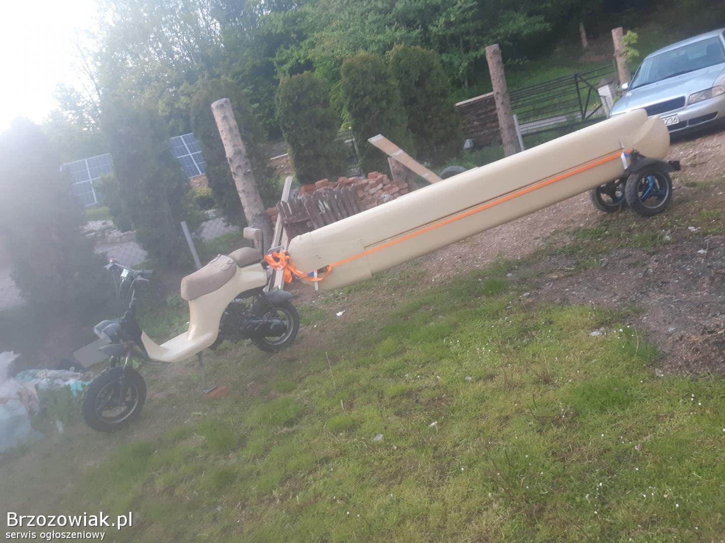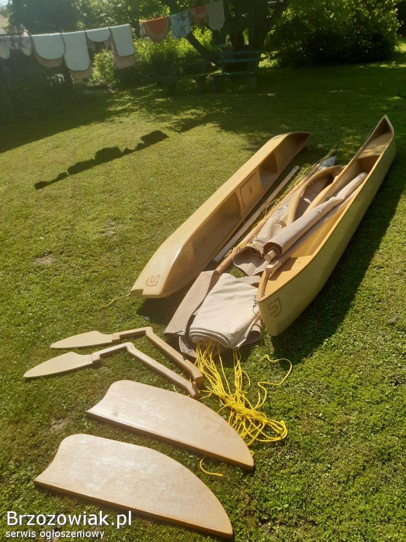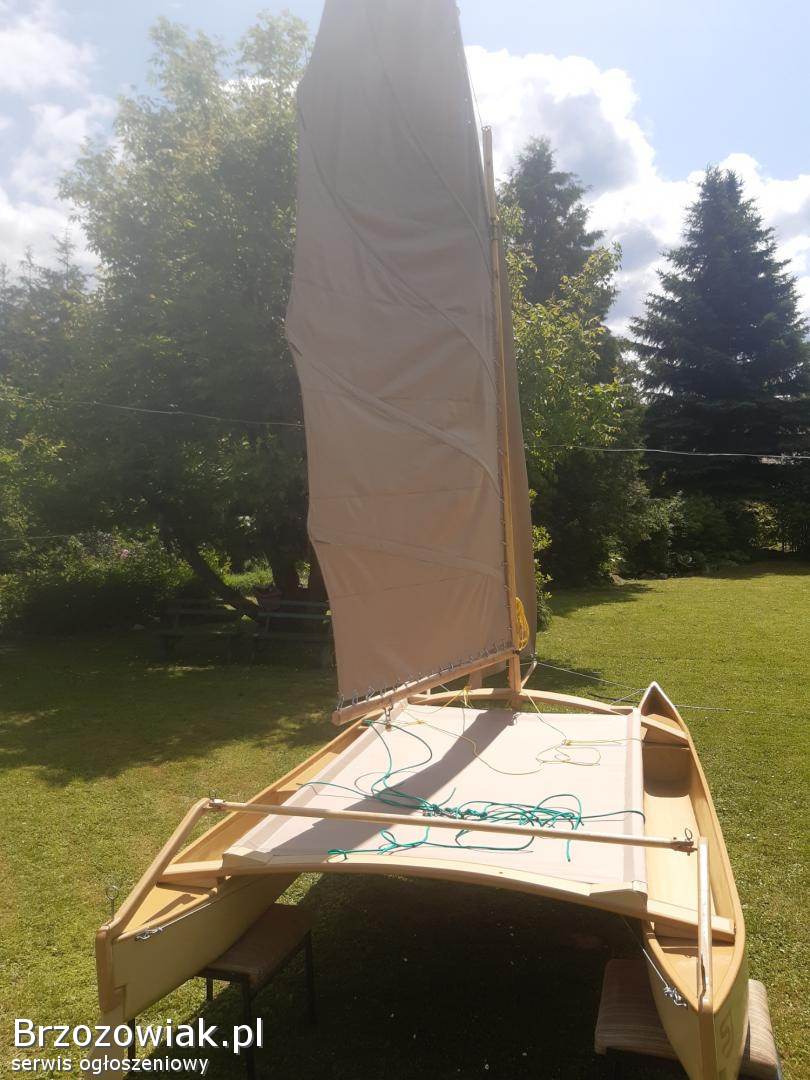 Mini katamaran z namiotem. Łódka ma 3, 5 m długości 1, 8 szerokości około 6 m2 żagla. Jest składana do transportu. Warzy 79 kg. Możliwość dokupienia przyczepki transportowej przystosowanej do roweru motoru skuter lub kładą. Waga przyczepki 32 kg