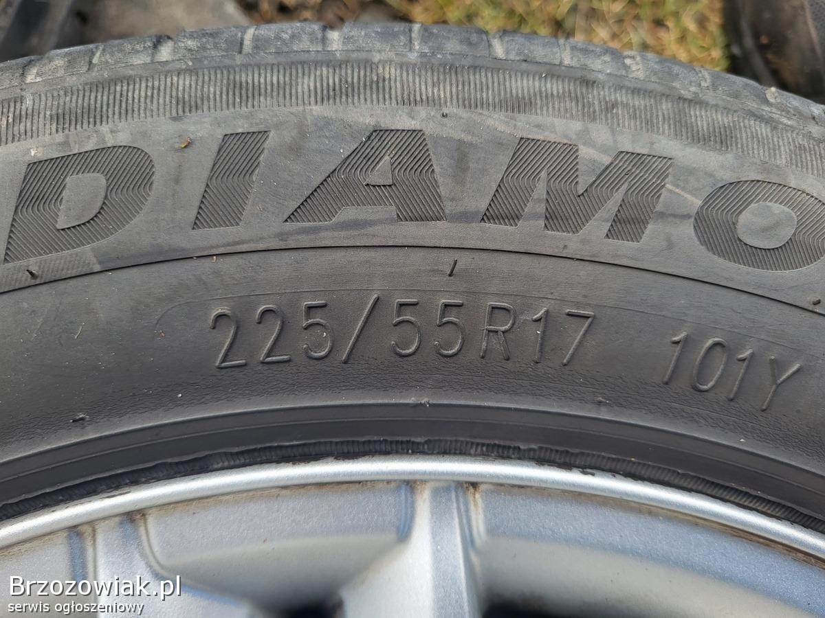 Sprzedam komplet kół aluminiowych z oponami letnimi 225/55/17R. 5mm bieżnika,