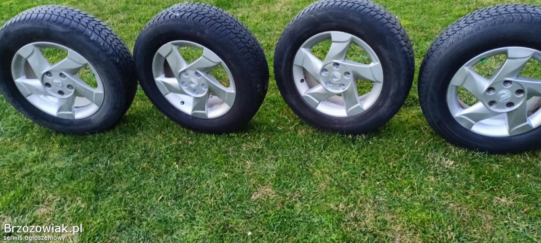 Sprzedam komplet koł aluminiowych 16 calowych do samochodu Dacia rozstaw 5x114, 3 z oponami w rozmiarze 215/65/16 cena 999pln
