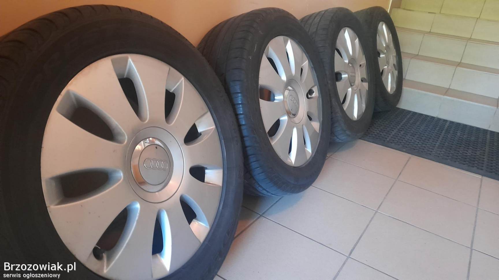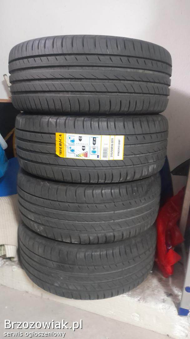Sprzedam opony na alufelgach do Audi A4 B6 - B7 oraz innych w tym rozmiarze - rozstaw 5x112, piasta 57, 1. Opony Dębica Presto UHP 215 55 16 kupione w serwisie Pielach. Użytkowane od początku na jednym samochodzie, nie naprawiane, nie klejone, bieżnik - 6mm. Posiadam dowód zakupu.
