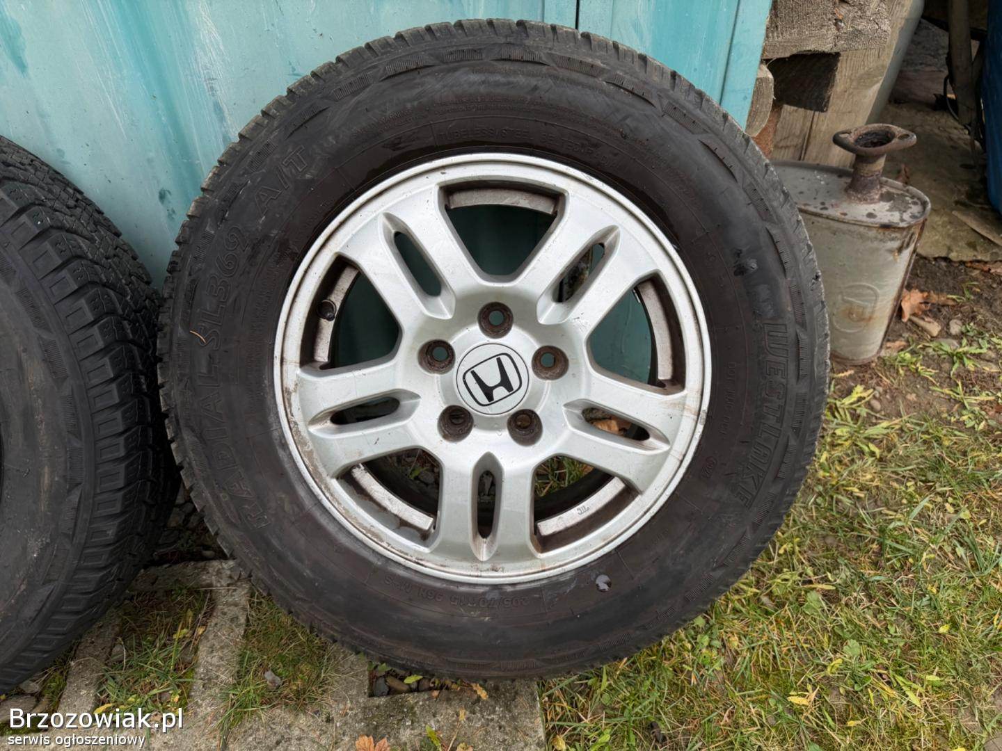 Do sprzedania posiadam komplet kół letnich z alufelgami OEM Honda o rozstawie 5x114, 3, w rozmiarze R15, ET 50, szerokość felgi 6J, otwór na piastę 64, 1 mm. Stan felg dobry, normalne ślady wynikające z eksploatacji. Na felgach prawie nowe opony w rozmiarze 205/70 R15 Westlake RADIAL SL369 A/T, DOT 5024, bieżnik 2x 5, 5mm i 2x 6, 5 mm. Zakupione w kwietniu 2025 r. jako nowe. Całość ściągnięta z mojego prywatnego samochodu, sprawowały się bardzo dobrze.
