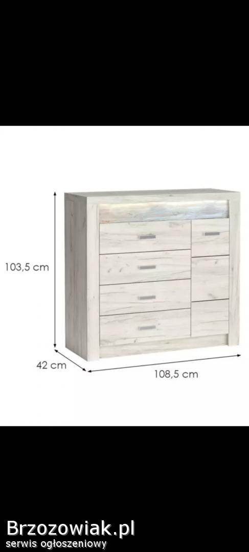 Sprzedam komodę w stylu nowoczesnym Indianapolis w kolorze biały Kraft. Mebel w bardzo dobrym stanie, bez uszkodzeń.