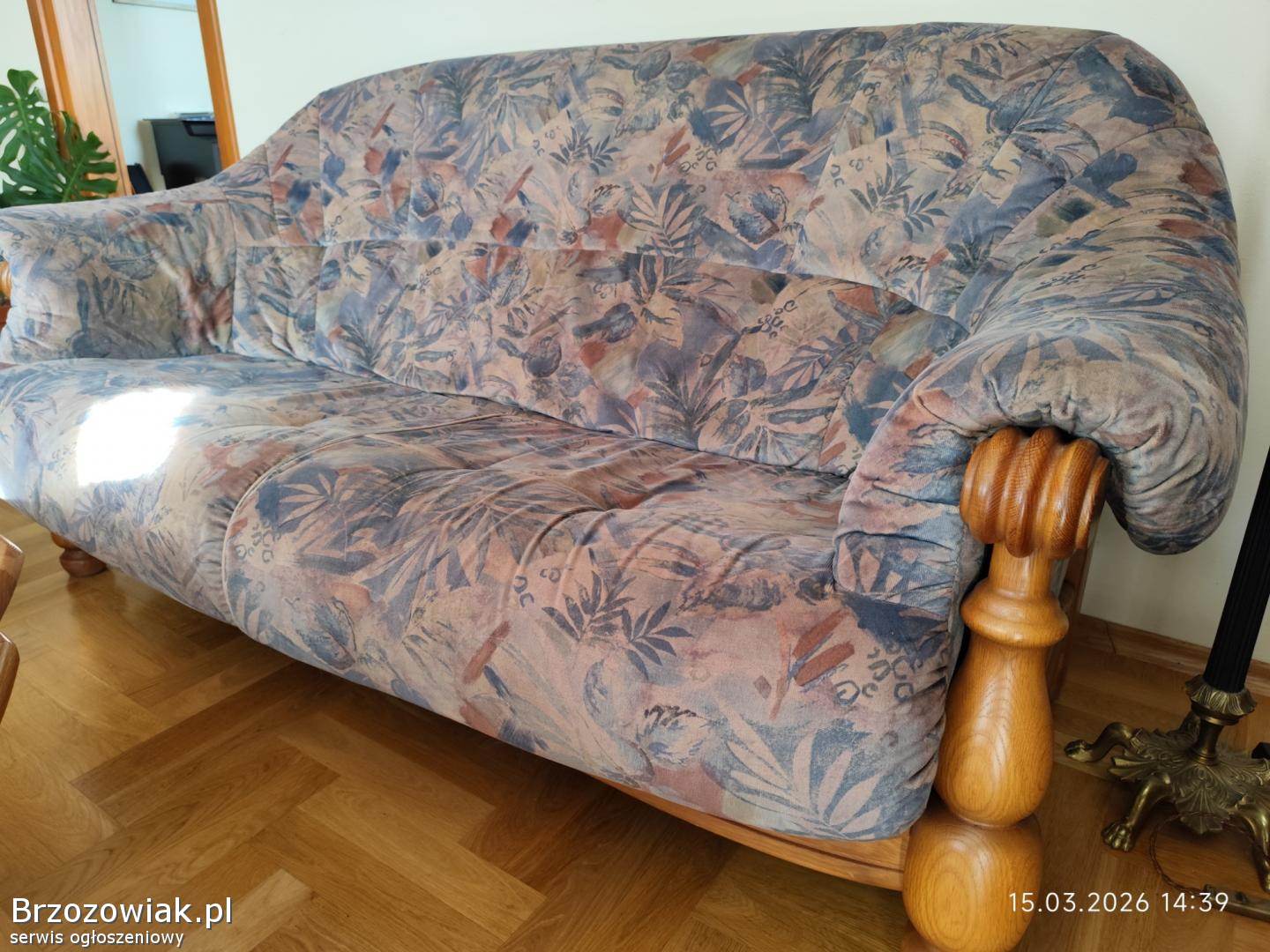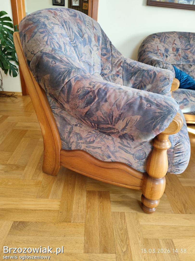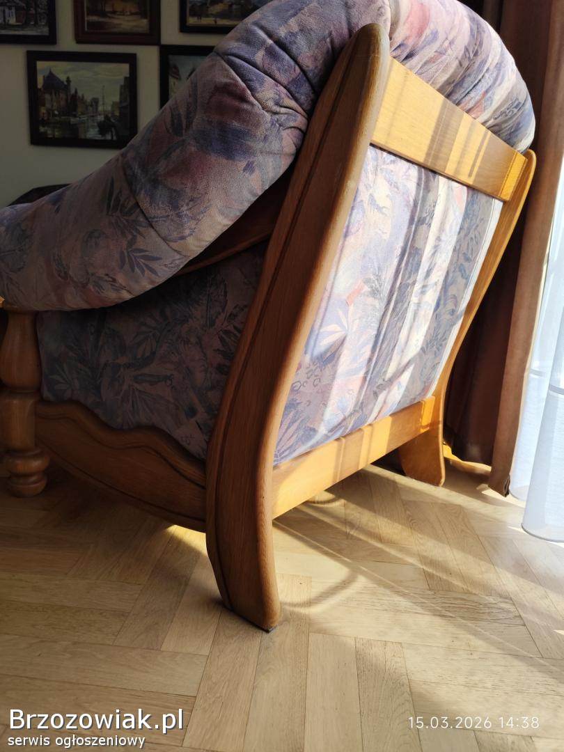 Holenderski komplet wypoczynkowy 3+1+1. Stelaż dębowy, tapicerka materiałowa melanż. Gąbki twarde sprężyste. Mebel posiada normalne ślady użytkowania. Polecam odbiór osobisty.