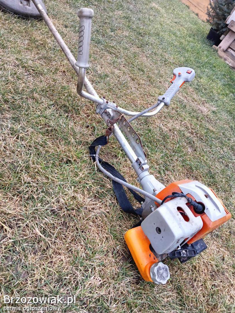 Posiadam dwie kosiarki stan do remontu, kosiarka na kółkach silnik pali do naprawy jest rączka do pchania oraz mocowanie koła. Mocna 6km. Kosiarka żyłkowa do wymiany jest guzik do pompowania paliwa.