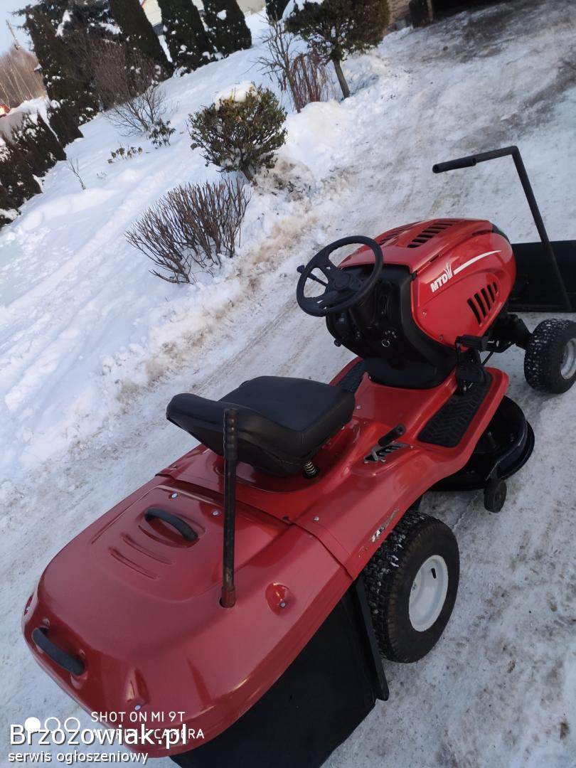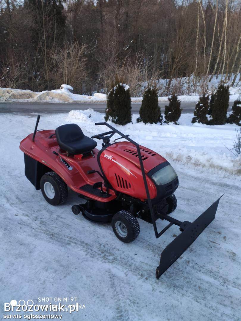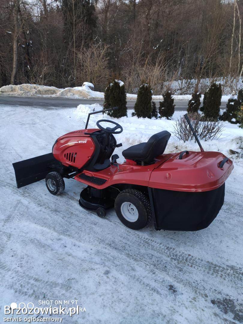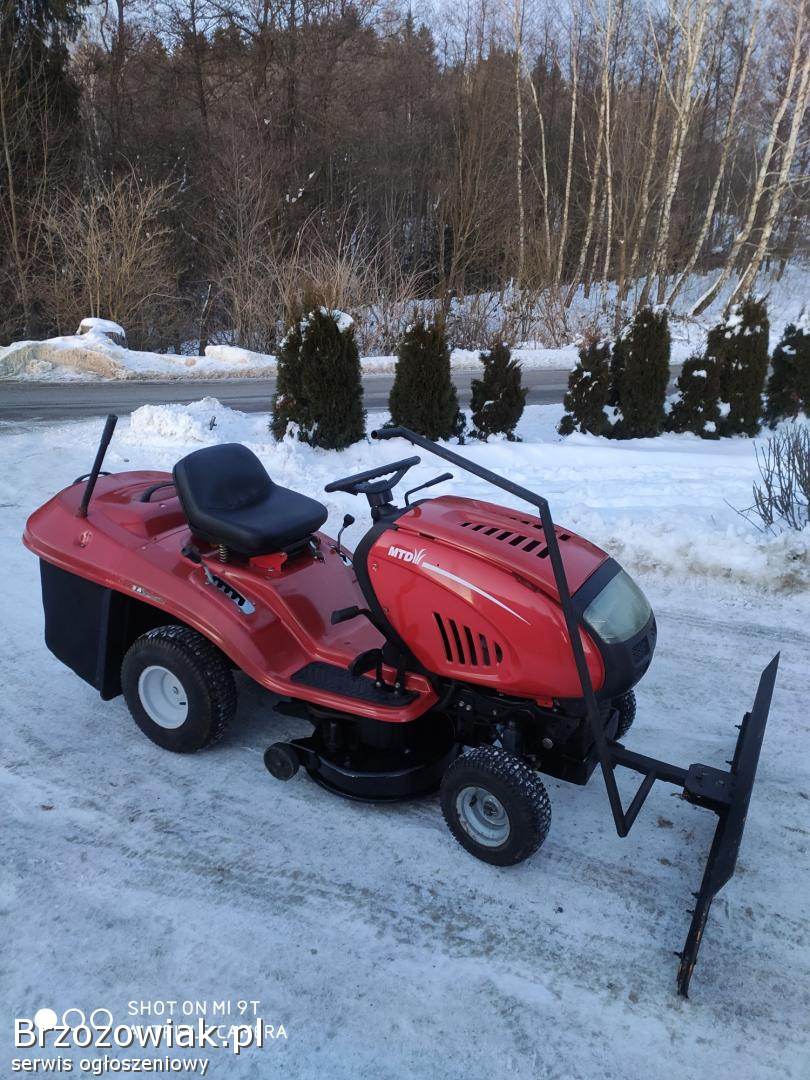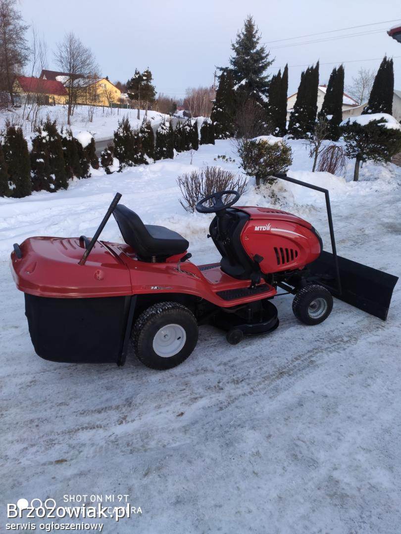 Sprzedam kosiarkę traktorek MTD z silnikiem o mocy 15 km z pompą oleju. Kosiarka w pełni sprawna. Założone nowe łożyska w agregacie tnącym, zmieniony olej, nowy żelowy akumulator, naostrzone noże, nowy pasek jazdy. Kosiarka posiada 5 wysokości koszenia, manualną skrzynie biegów która działa zasadzie skrzyni hydrostat (mocniej naciskasz pedał jazdy to jedzie szybciej), sprzęgło/ hamulec rozłączający napęd, hamulec postojowy. Kosiarka wyposażona w kosisko o średnicy koszenia ponad 1m na kółkach samo ustawiające się do terenu, możliwość koszenia z koszem lub bez. Kosz opróżniany z pozycji siedzącej. Możliwość zakupu kosiarki wraz z pługiem do śniegu, pług regulowany na 3 strony i dźwigany bez konieczności schodzenia z traktorka, od dołu posiada gumę zgarniającą, szerokość pługa 120cm, szybki montaż i demontaż pługa i kosiska. Więcej informacji pod numerem 609796368. Cena kosiarki 4800 zł, zestaw z pługiem 5500 zł.