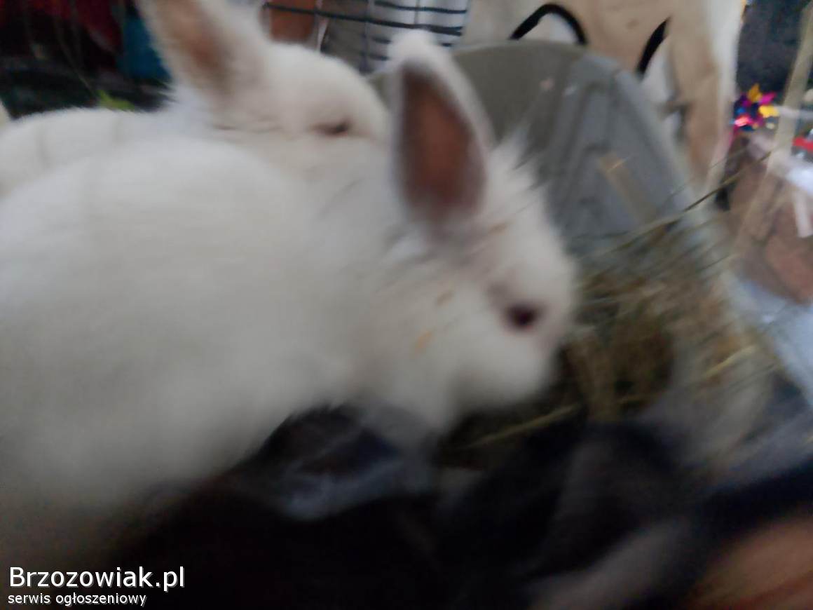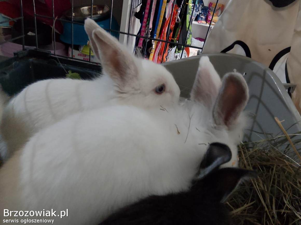 Królik mini biały i biało cAarnu. Bardzo spokojne lubią głaskanie. Potrzebujesz wyposażenia też mam odpłatnie. Króliki mają 3 MSC
