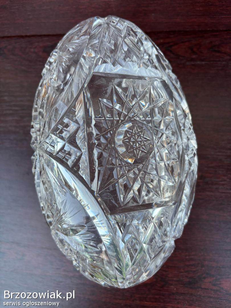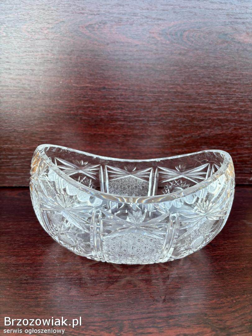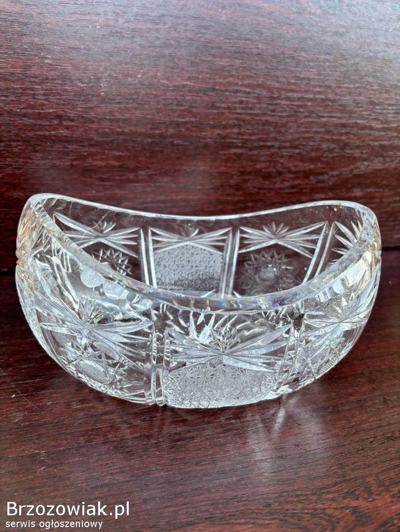 Kryształ gondola PRL Ma ciekawy kształt łódeczki oraz śliczne, bogate żłobienia.