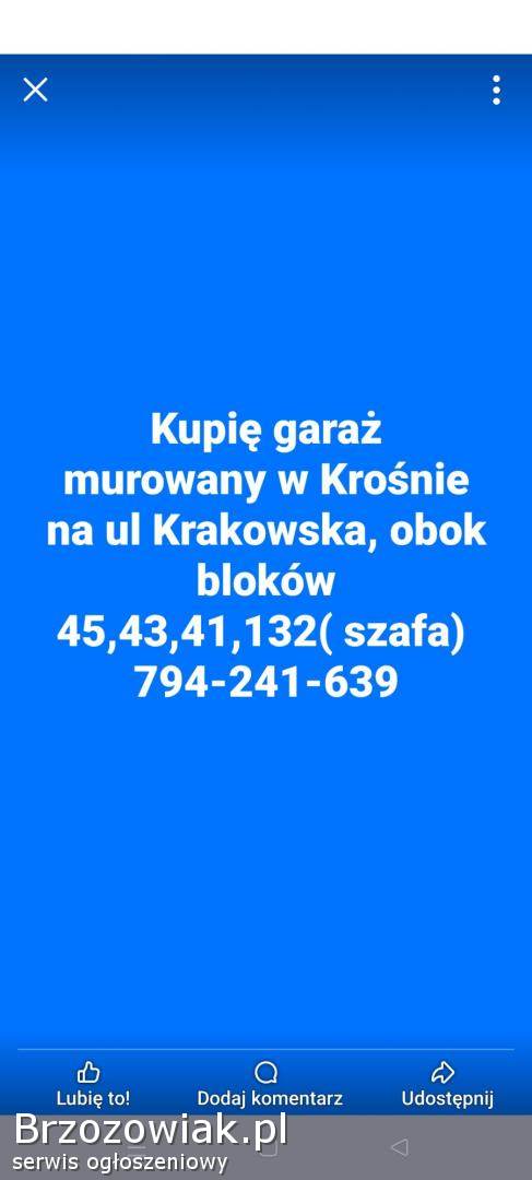 Kupię murowany garaż Krosno ul Krakowska 41, 43, 45, 132.