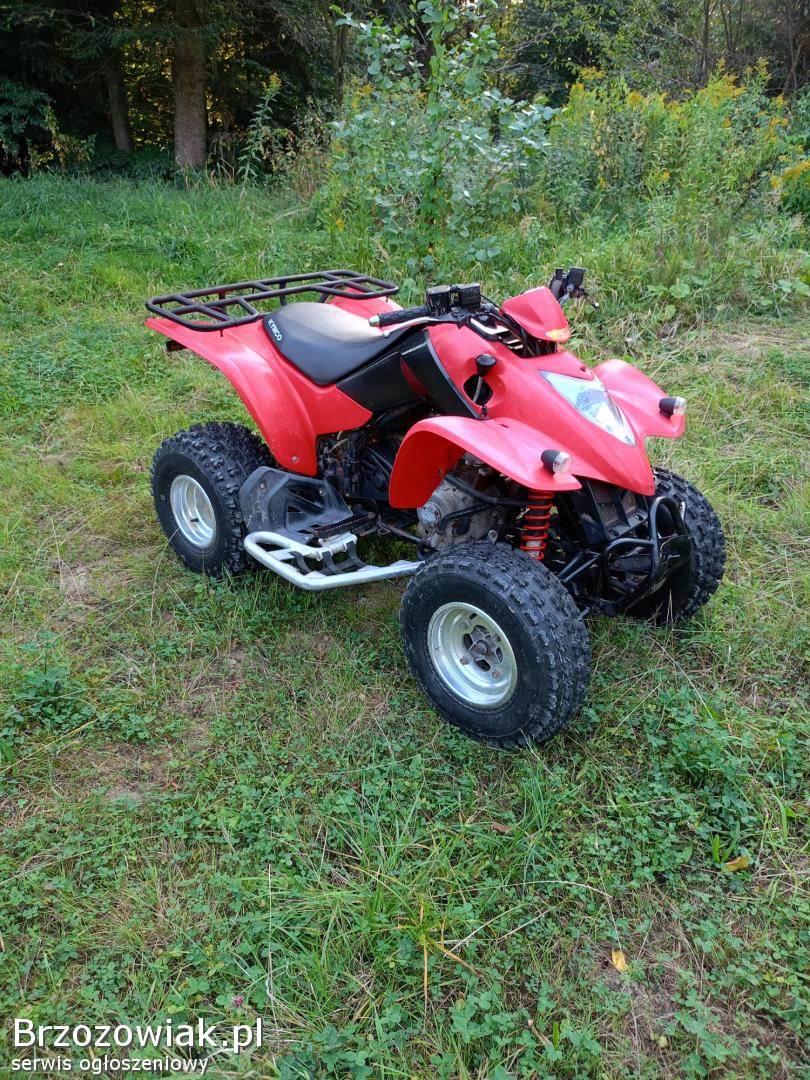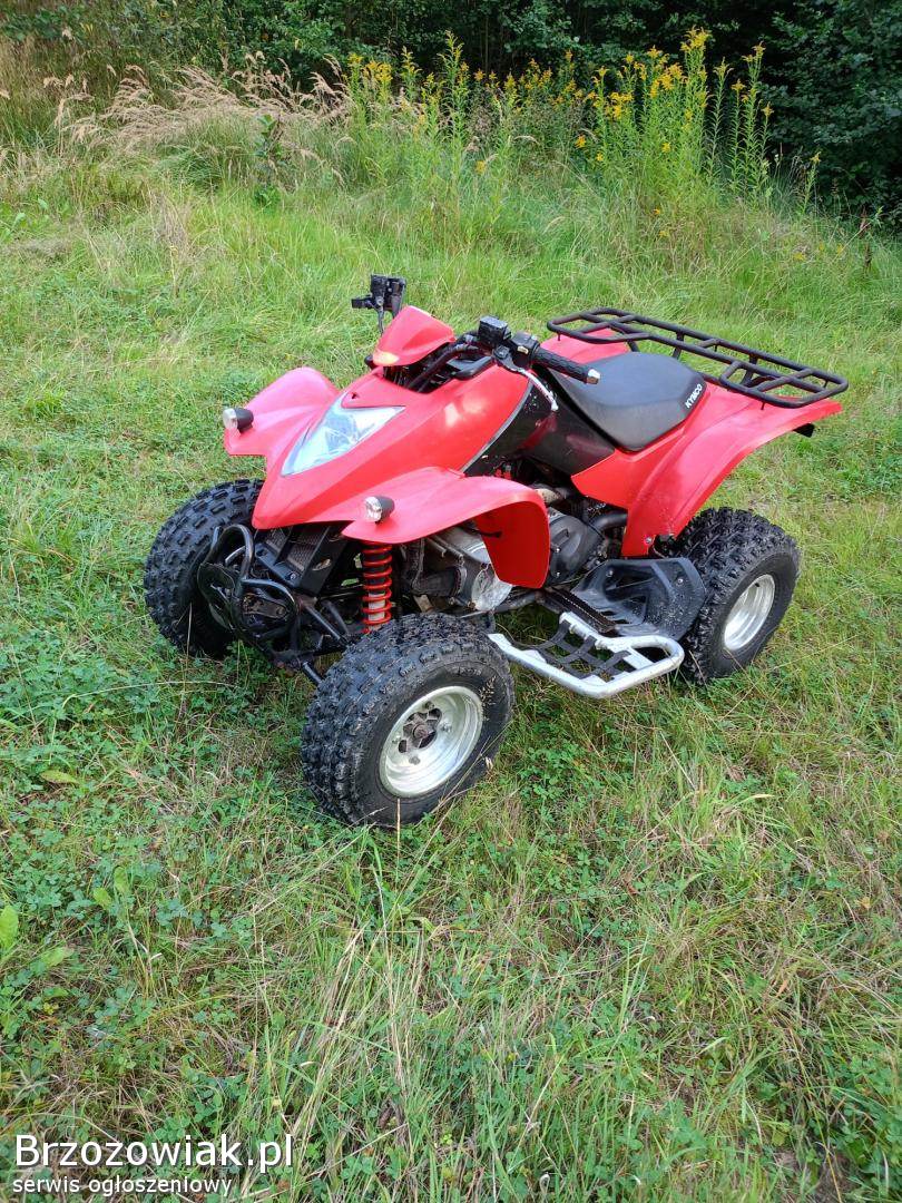 Sprzedam quada że skrzynią automatyczną w stanie bdb nowy akumulator nowy olej, nowy łańcuch nowa przednia zębatka i kranik paliwa nowe opony. silnik pracuje bardzo ładnie quad do jazdy bez inwestycji, zawieszenie bez żadnych luzów. Kuad nie posiada chomologacji cena 6400.