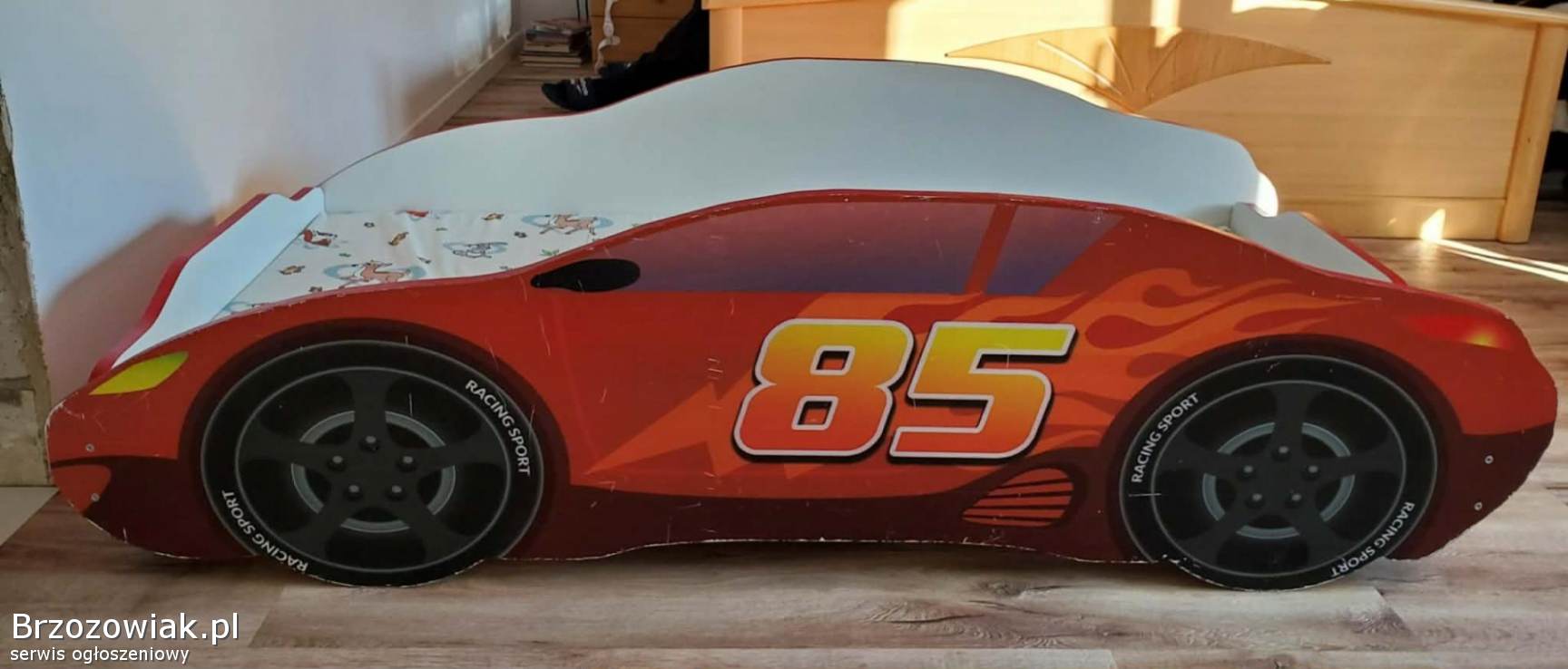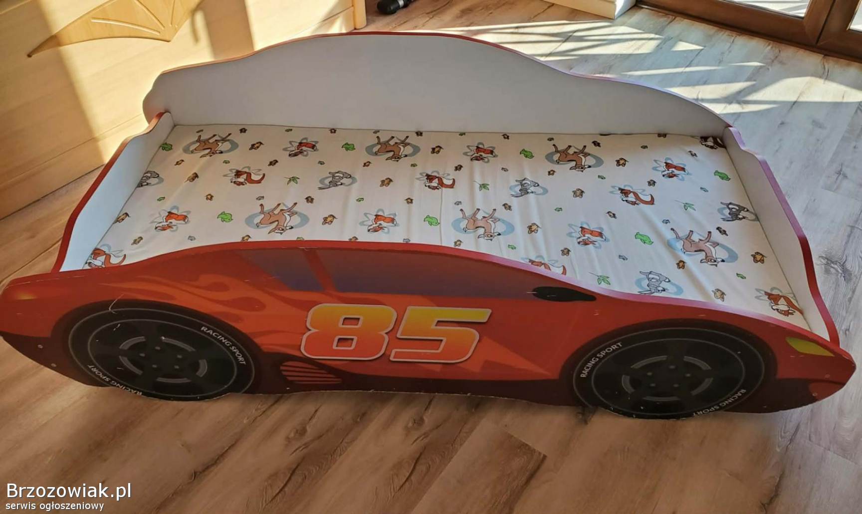 Łóżko dla dziecka z normalnymi śladami użytkowania w pełni sprawne, kompletne z materacem.