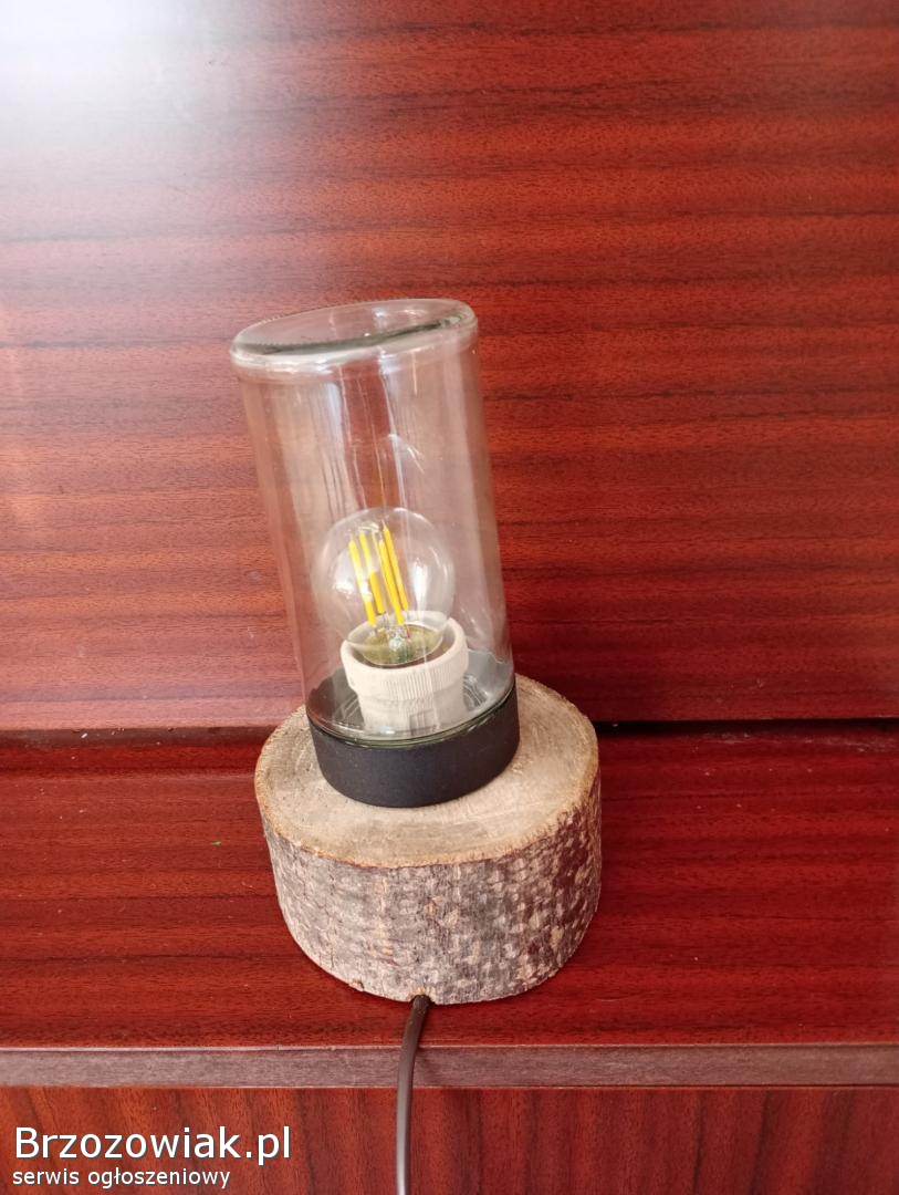 Sprzedam lampke, wykonaną recznie, podstawa z pnia lipy, założona żarówka dekoracyjna.