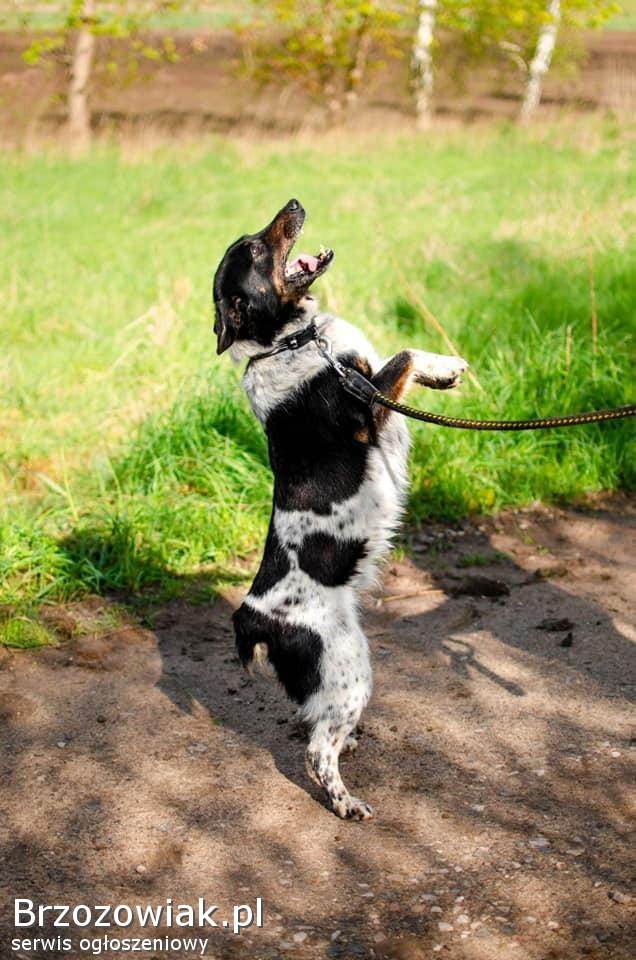 Łatek to około 6-letni pies, z którym można by konie kraść. Pełen radości, energii i miłości do ludzi. Gdy widzi człowieka, wygina się w różne strony, błaga o głaskanie i cieszy się całym sobą. To pewny siebie, odważny chłopak – jeśli coś mu się nie podoba, potrafi postawić na swoim i obszczekać innego psa. Jego największa miłość Człowiek… i PATYK! Nasza schroniskowa „krówka” dosłownie szaleje na widok podniesionego kija – staje na dwóch łapach, merda malutkim ogonkiem i czeka na zabawę. To sprawia mu ogromną radość! Łatek pięknie chodzi na smyczy, zna podstawowe komendy i prawdopodobnie miał już kiedyś swój dom. Jest psem średniej wielkości, idealnym kompanem do wspólnych spacerów i przygód. Może właśnie Ty jesteś osobą, na którą tak długo czeka
