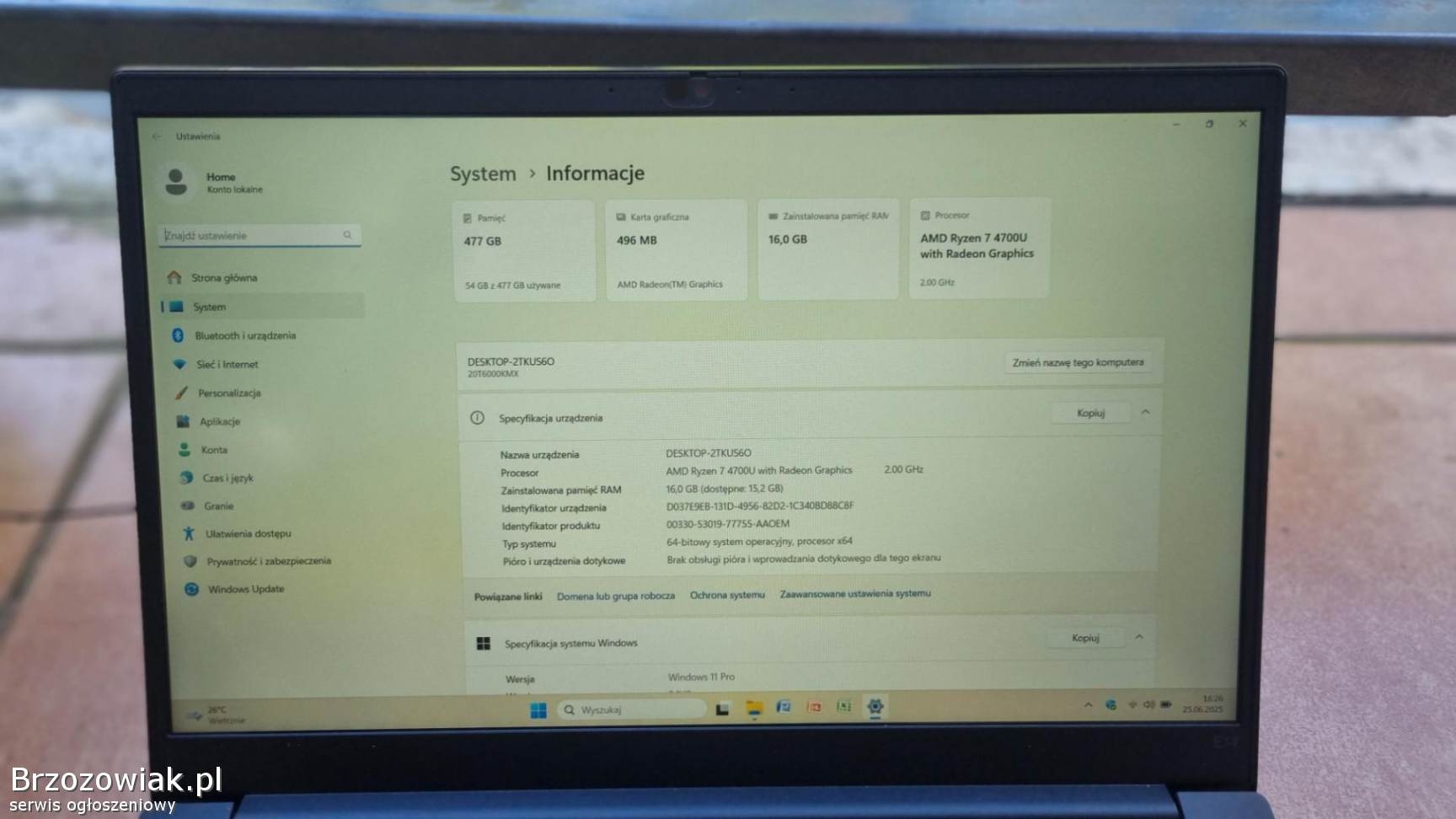 Procesor AMD Ryzen 7 PRO 4700U Quad Core 8x 2. 00GHz z turbo do 4x 4. 10GHz 8MB Cache Quad Core