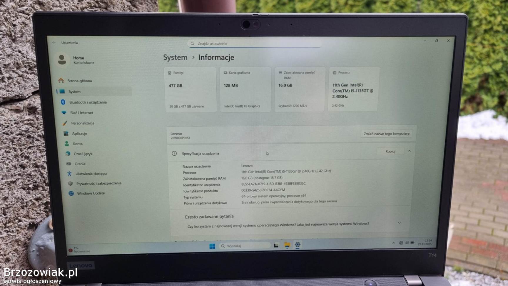 Lenovo ThinkPad T14 Gen 2 to zaawansowany laptop stworzony z myślą o profesjonalistach, którzy potrzebują wydajności i mobilności w jednym urządzeniu. Wyposażony w procesor Intel Core i5-1135G7 oraz matrycę Full HD IPS, zapewnia komfort pracy w każdych warunkach. Smukła i lekka konstrukcja w połączeniu z długą żywotnością baterii czyni go idealnym towarzyszem dla osób pracujących w ruchu, oferując niezawodne narzędzia do zwiększenia produktywności.