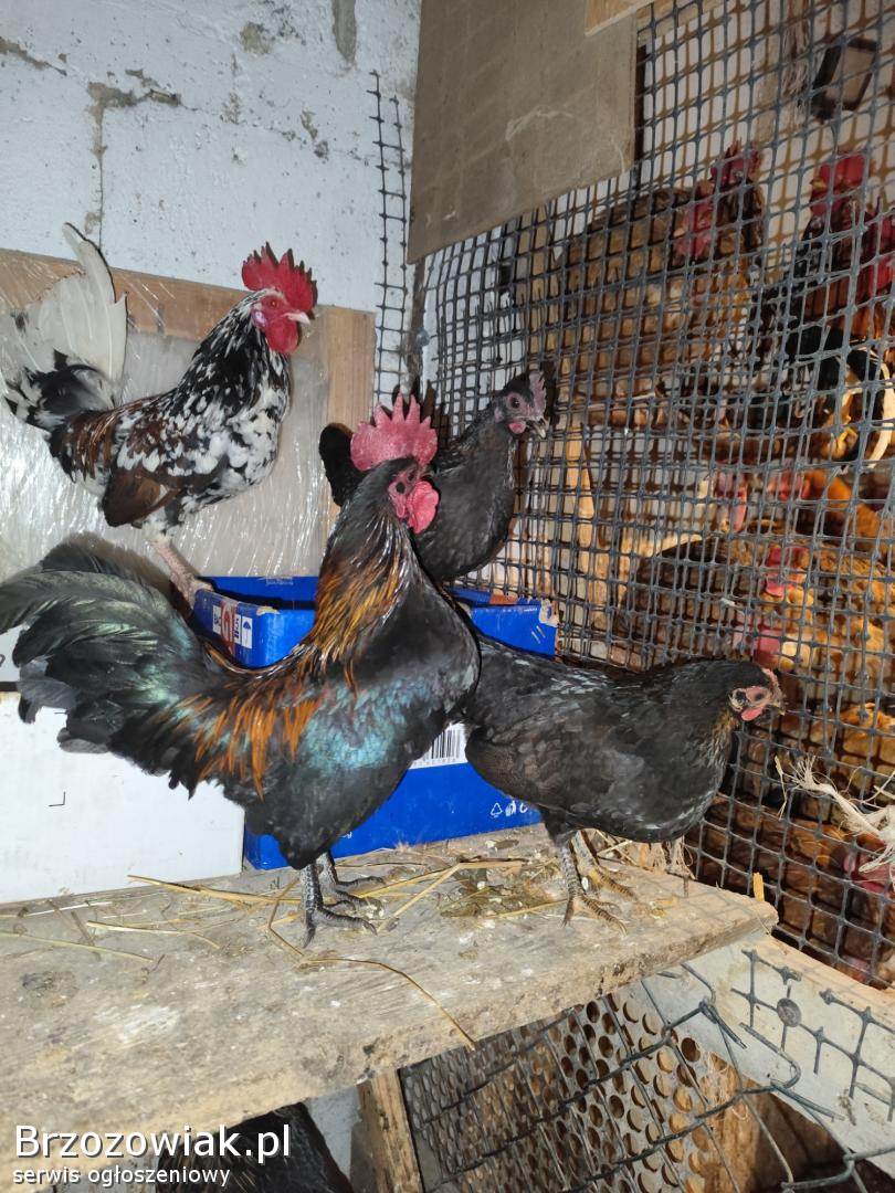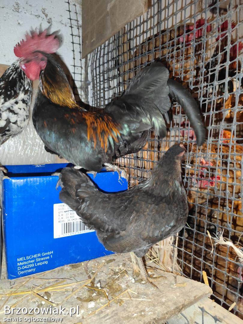 Sprzedam cztery kureczki koloru tylko czarnego ciemne wraz kogutem sprzedaż tylko parami kureczek, bądź same koguty.