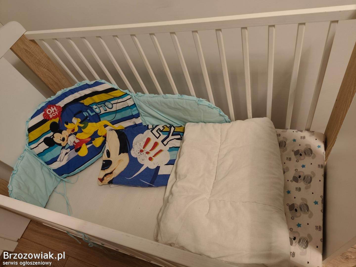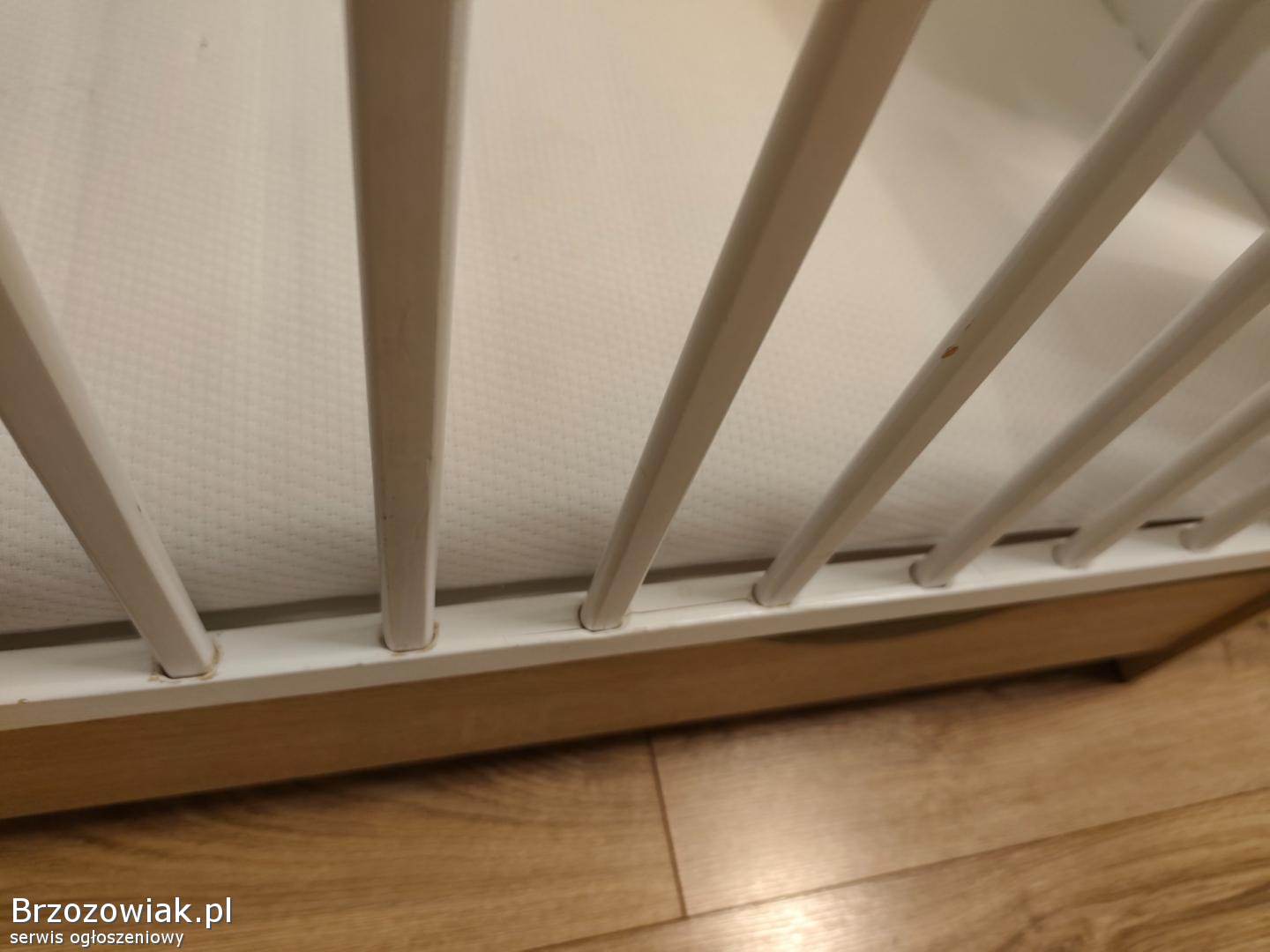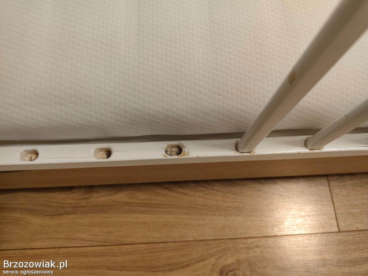 Delikatne skazy na ostatnich zdjęciach (rysy przy wyjmowanych szczebelkach), fronty i reszta w bardzo dobrym stanie. Dołączam bardzo dobry materac piankowo-lateksowy, mało używany. Mogę dodać też osłonę, pościel i poduszkę klin.
