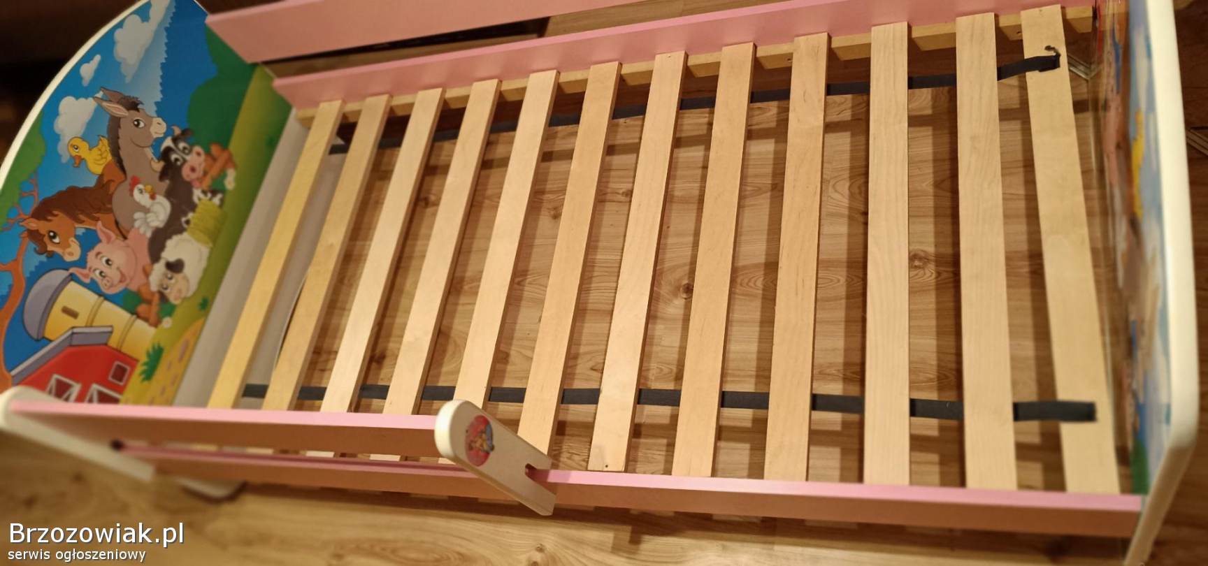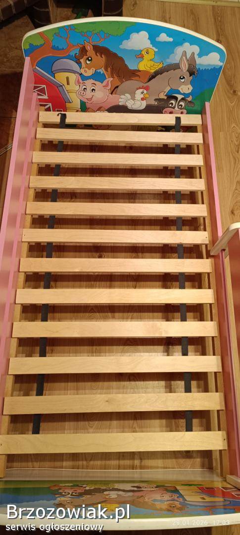 Sprzedam w bardzo dobrym stanie łóżeczko w kolorze biało-różowym dla dziewczynki.