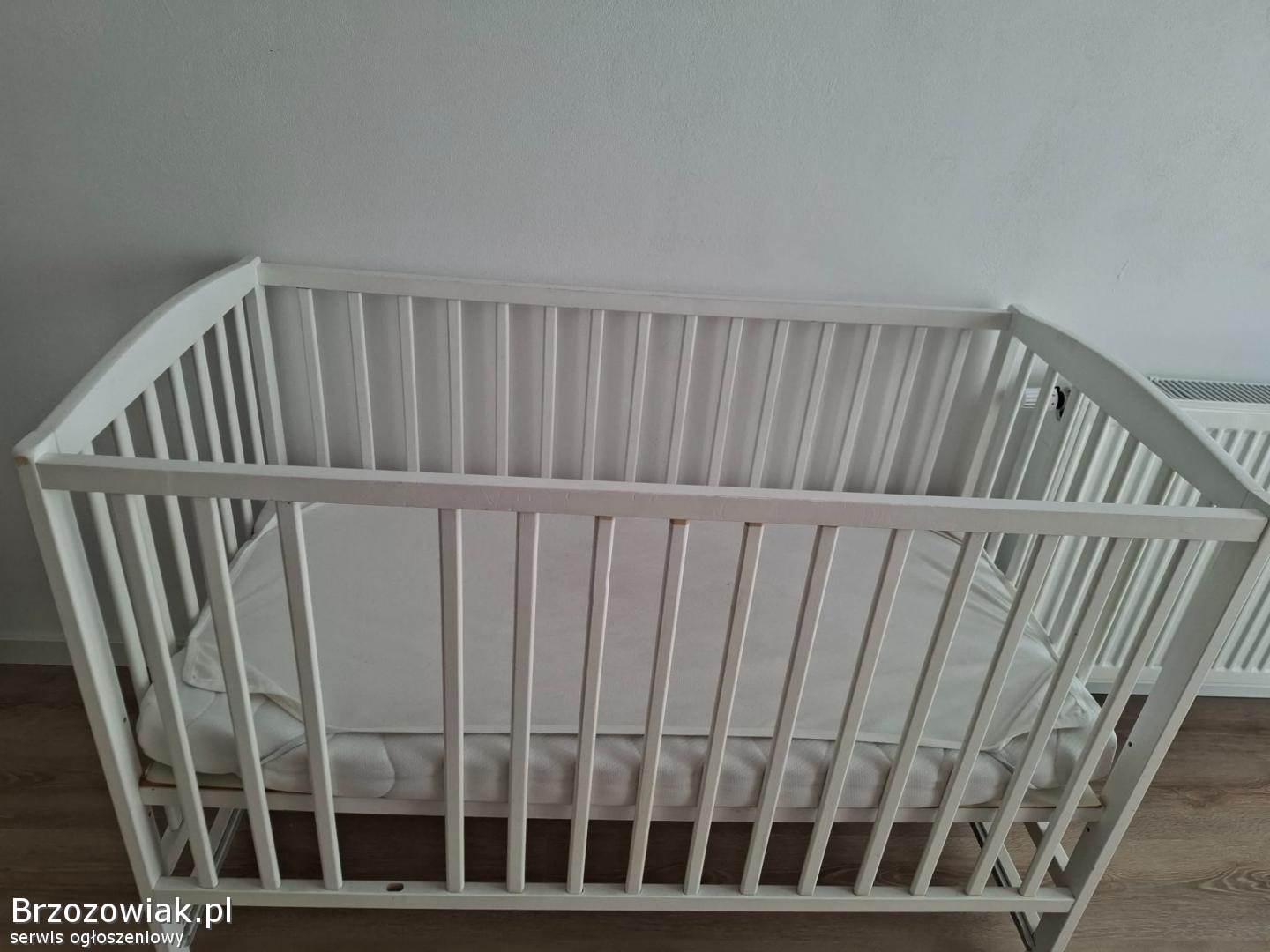 Sprzedam białe łóżeczko z szuflada, nowym materacem120x60 oraz ochraniaczem.