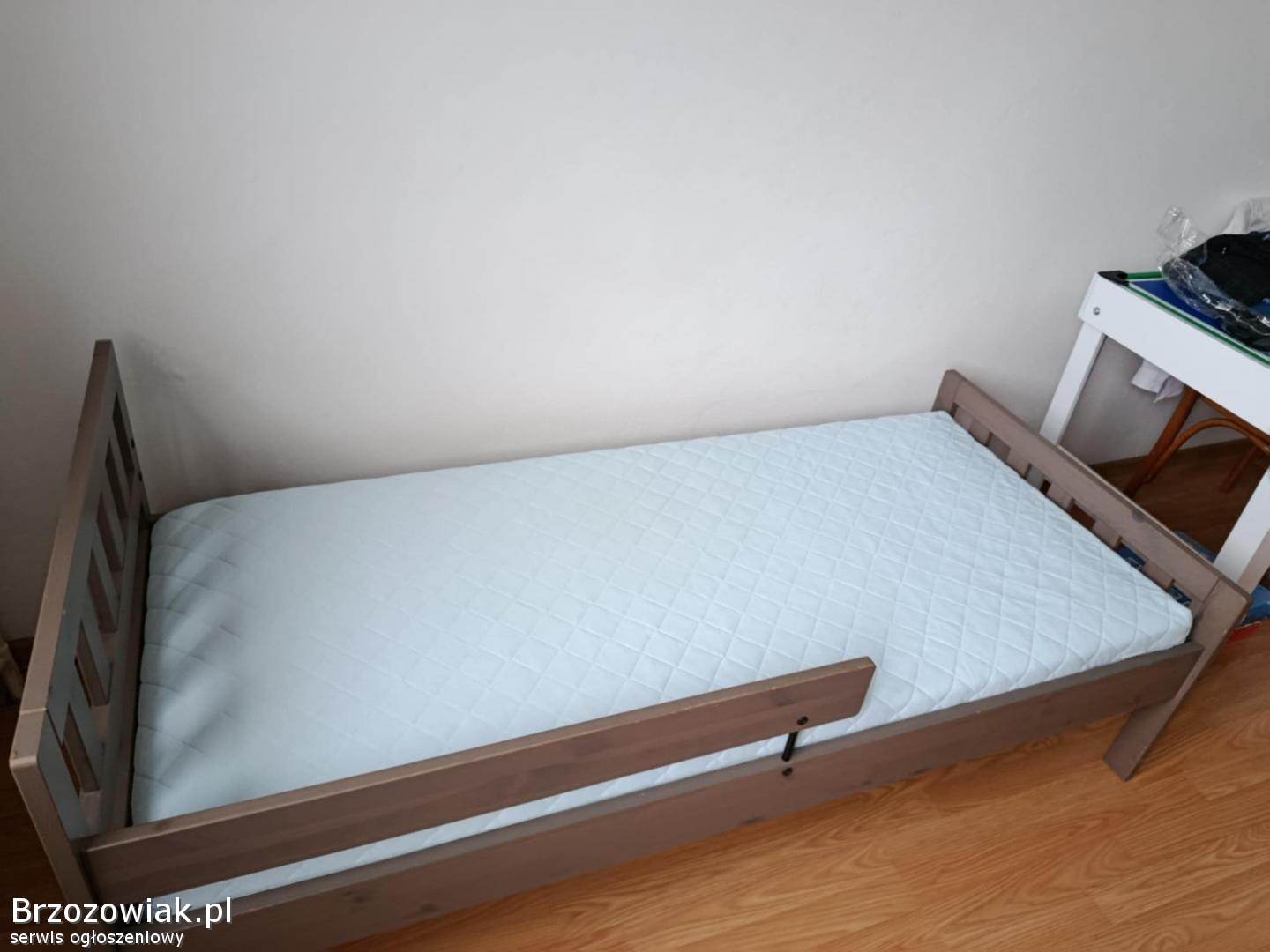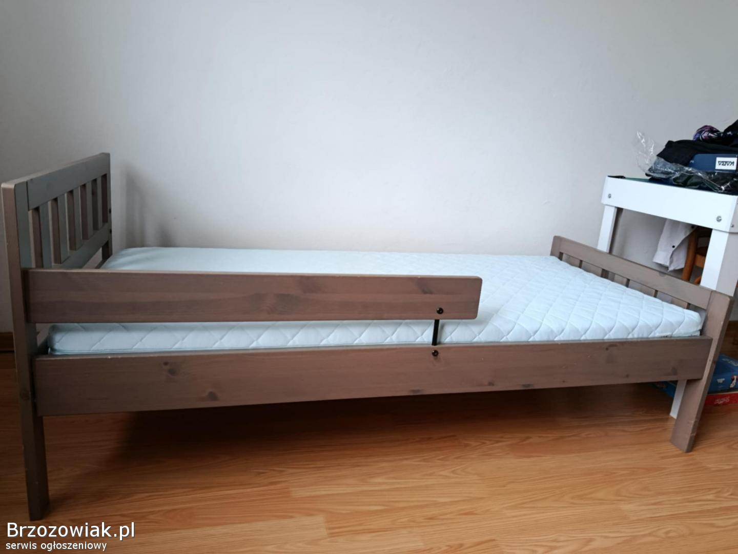 Łóżko dziecięce IKEA w bardzo dobrym stanie. Solidna konstrukcja z drewna, posiada barierkę boczną, można ją wymontować.