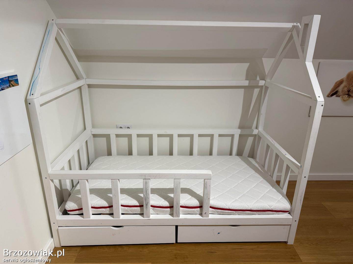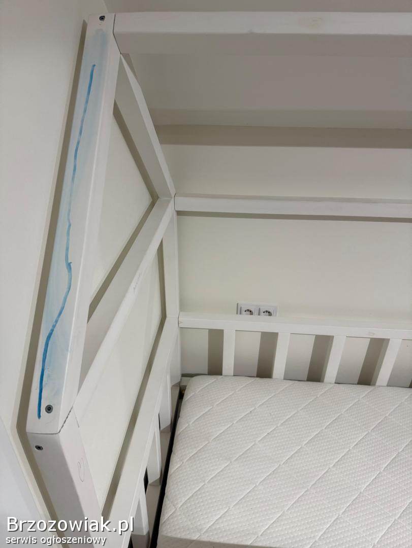 Wygodne łóżko w kształcie domku o wymiarach 160x80 cm kupione na stronie Sweet Baby Room wraz z materacem zakupionym w Pan Materac. Idealne do pokoju dziecięcego. Solidna konstrukcja zapewnia bezpieczeństwo i komfort użytkowania.