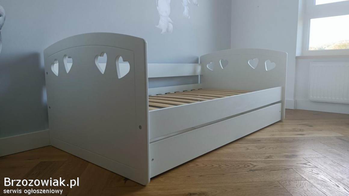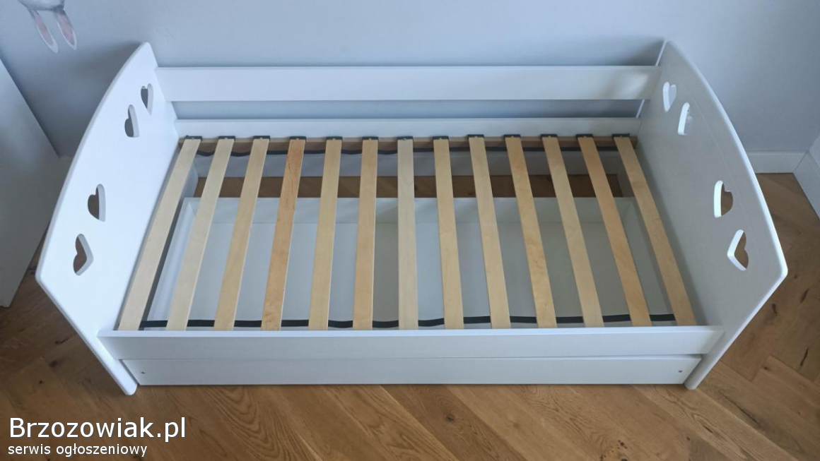 Wymiary łóżka: 80x160 cm – idealne jako pierwsze większe łóżko po łóżeczku dziecięcym. Uniwersalny biały kolor pasuje do większości aranżacji pokoju dziecięcego.