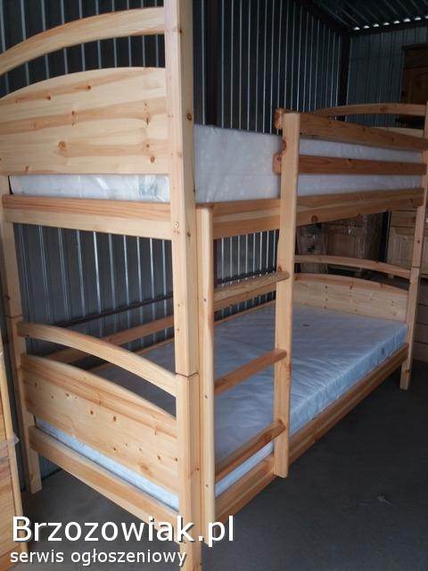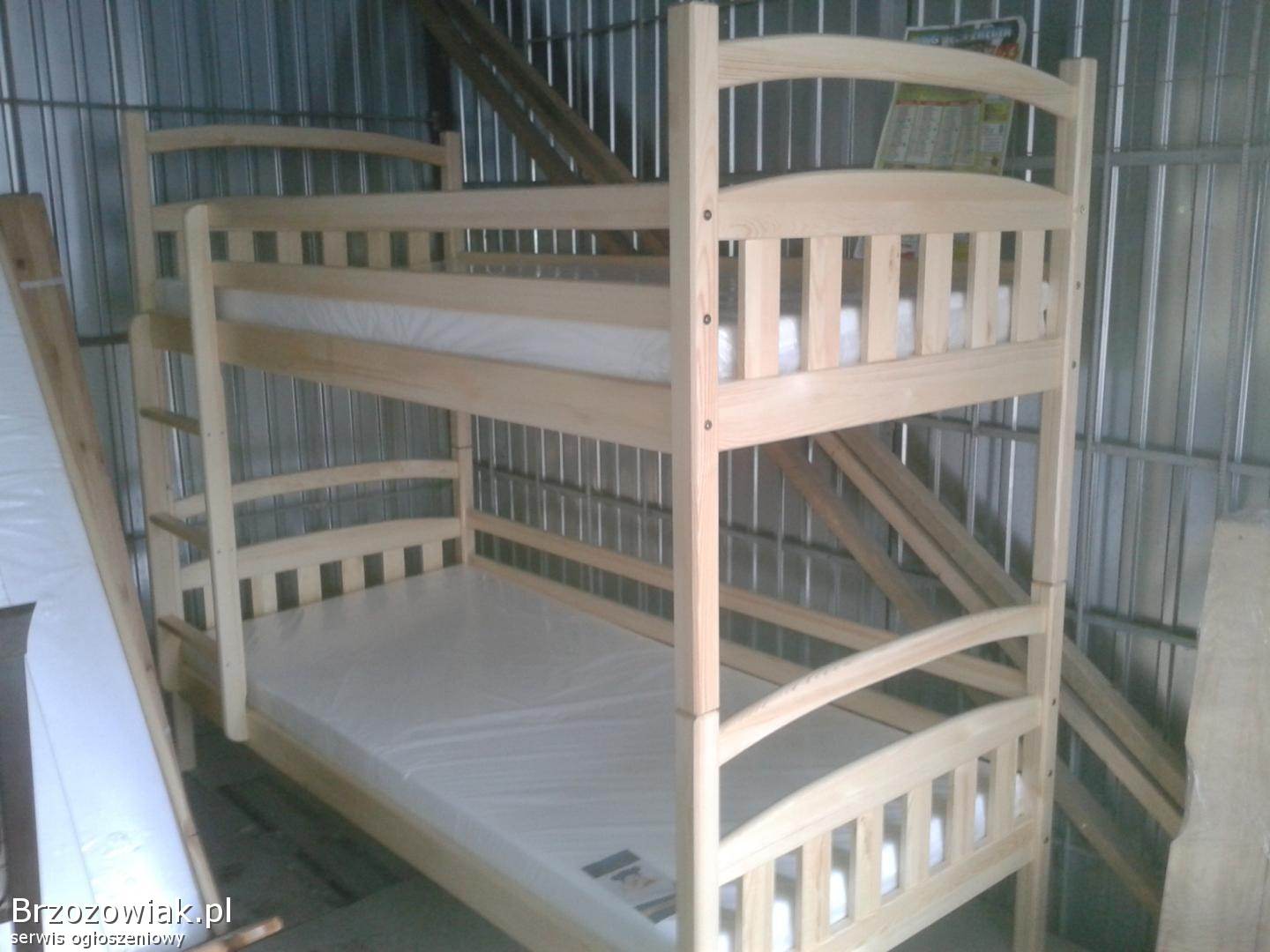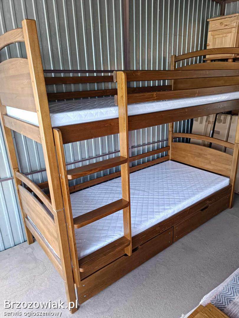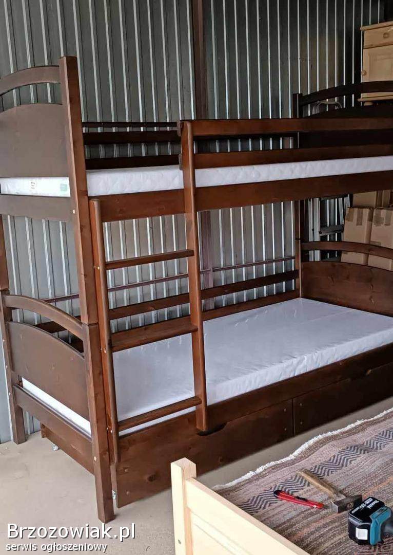 Przedmiotem sprzedaży jest łóżko piętrowe dwuosobowe, wykonane z bardzo dobrej jakości drewna sosnowego w wymiarach materacy 90 x 200. Łóżko wykonane bardzo masywnie boki osadzone na kołkach i skręcane śrubami. Podana cena jest ceną całego kompletu wraz z materacami piankowymi, oraz szufladami (za dopłatą na zamówienie mogą być materace sprężynowe)