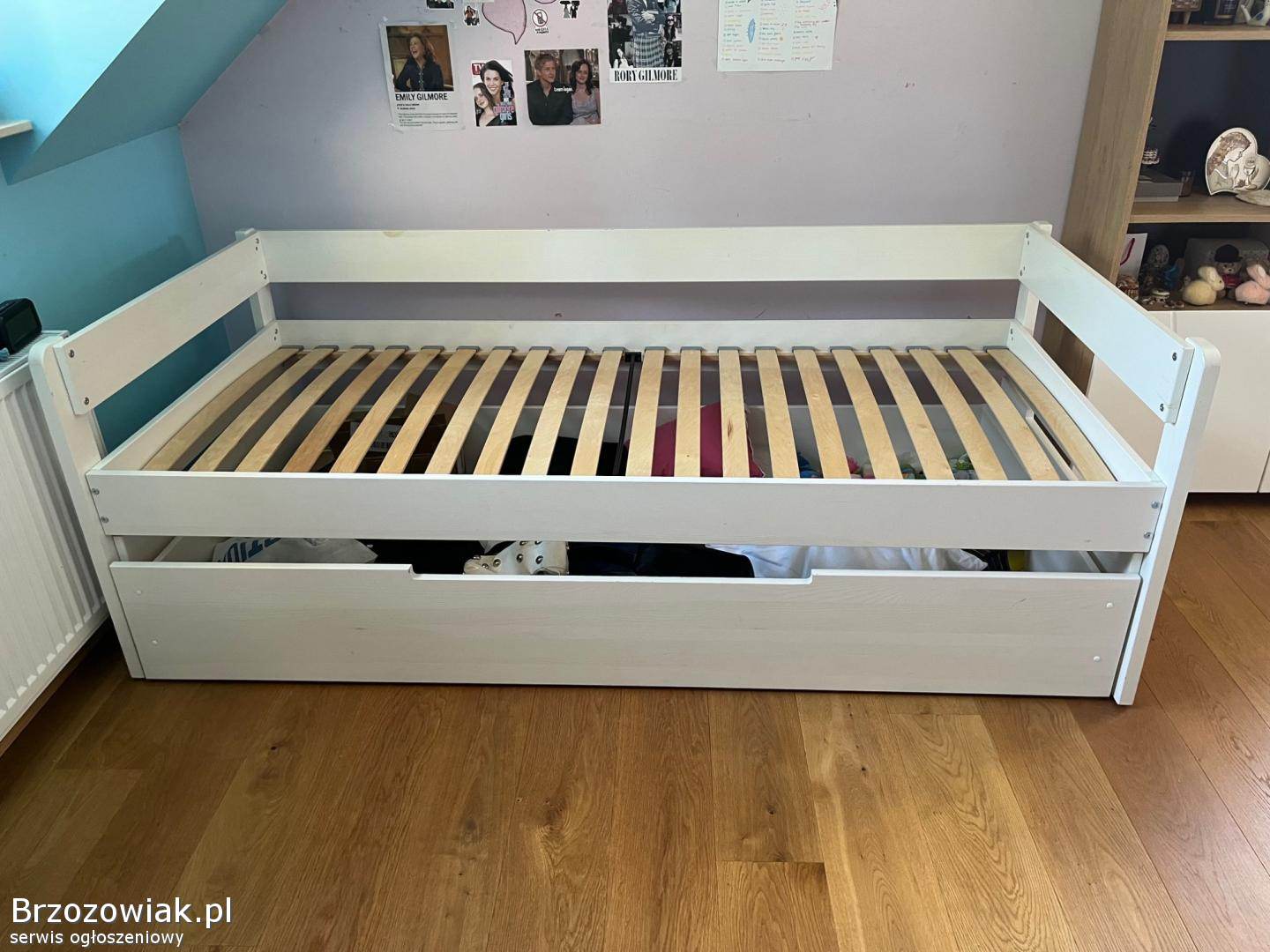 Sprzedam łóżko sosnowe z szufladą oraz stelażem.