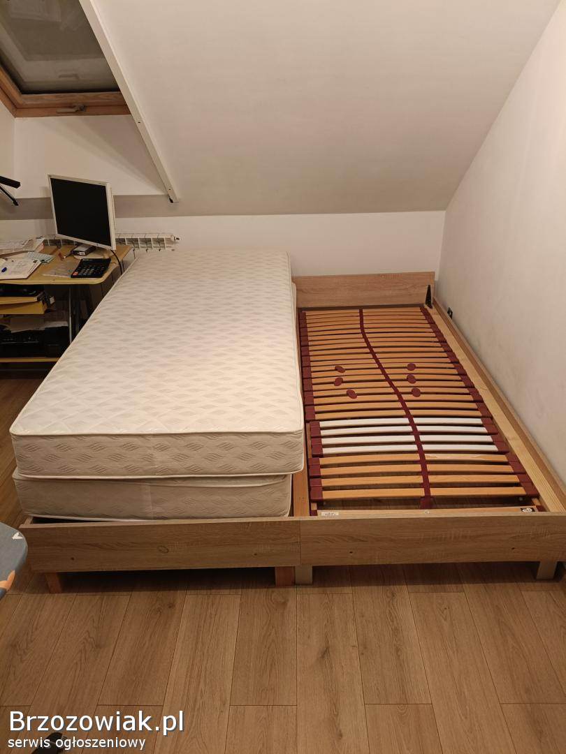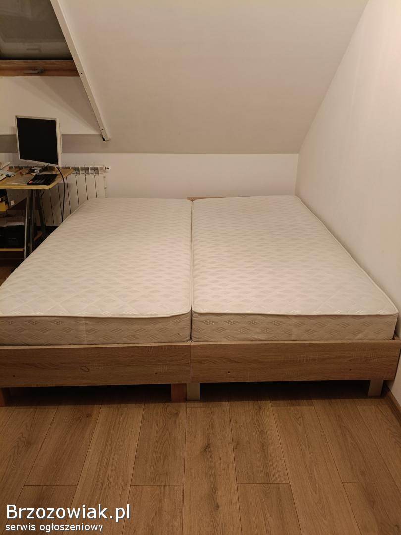 HumniskaMam do sprzedania łóżko sypialniane w rozmiarze 180x200. Łóżko kompletne wraz z stelażem oraz materacami 90x200 (2 szt). Stan łóżka bardzo dobry, konstrukcja wł