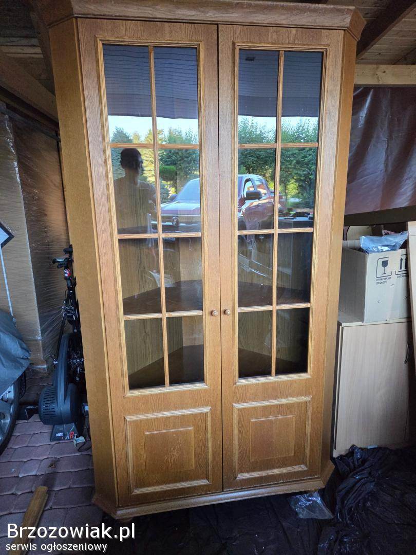 Sprzedam witrynę w kształcie trójkąta, narożna z przeszkleniem z drewna. Cena 300 zł tel 502 303 280