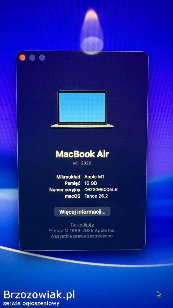 Sprzedam notebooka Apple Macbook Air z procesorem M1. 16GB pamięci RAM i 256GB dysk.