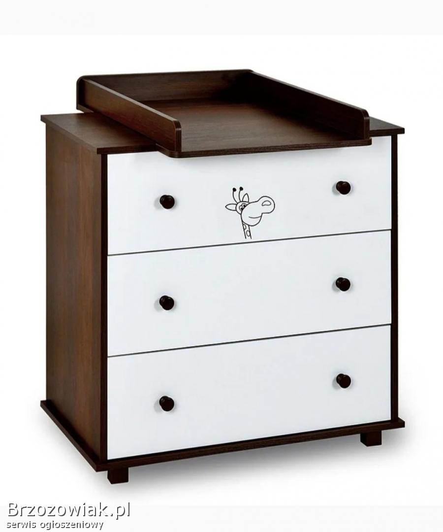 Sprzedam kpl mebli niemowlęcych Klupś żyrafa drewniane łóżeczko niemowlęce w kolorze ecru-orzecha. Łóżeczko jest solidne i bezpieczne, z regulowaną wysokością dna. Do zestawu wchodzi komoda z 3 szufladami i z przewijakiem oraz skrzyneczka na zabawki i półeczka. Cena do uzgodnienia. Dorzucam gratisy