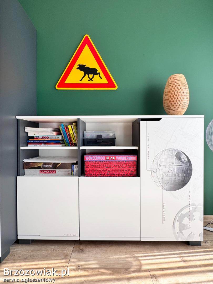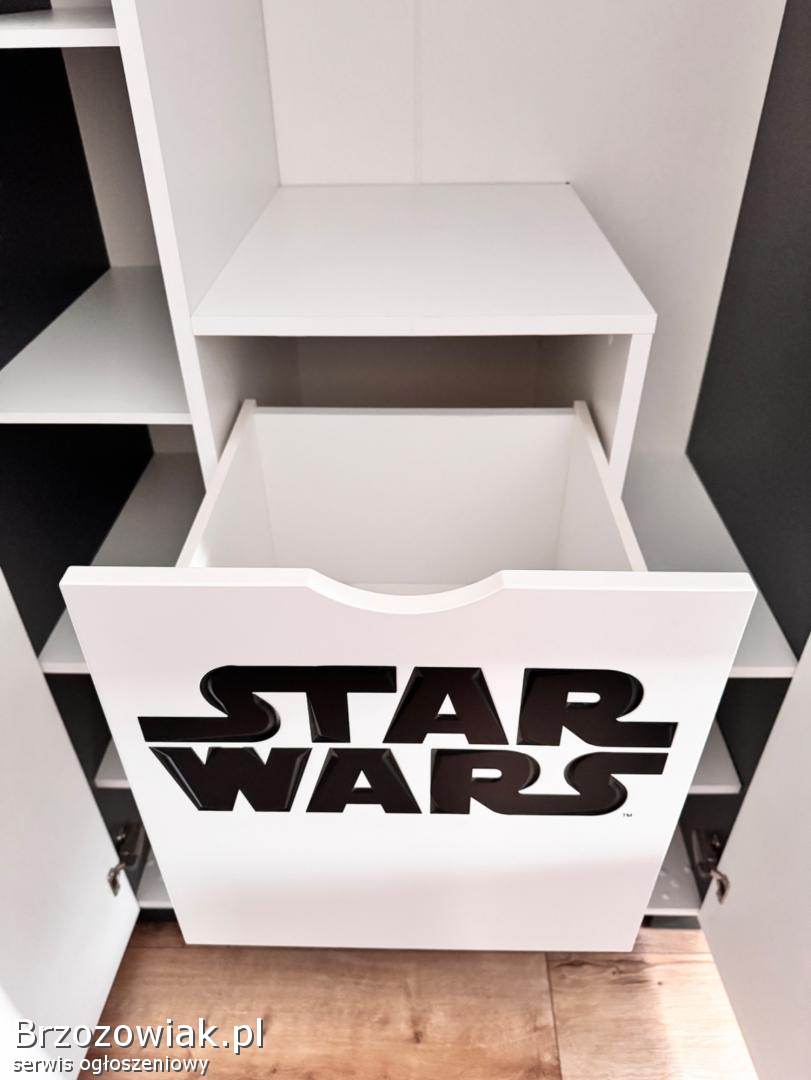 Dla fanów STAR WARS mam do sprzedania szafę, komodę i skrzynię z grawerem Starwars Producent mebli to firma MEBLIK. Ceny nowych mebli (inne motywy, Starwars już niedostępny) na stronie firmy Meblik. Meble są w bardzo dobrym stanie, solidne i zadbane. Wymiary komody 150/105/37, skrzyni 70/42/40, szafy to 200/100/56 cena za komplet 2900, TYLKO ODBIÓR
