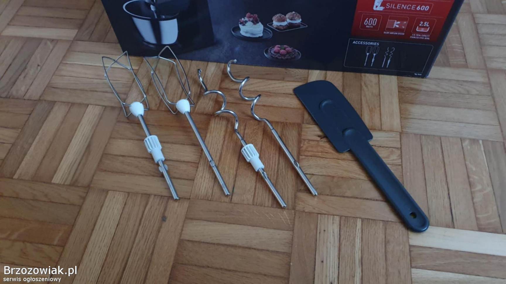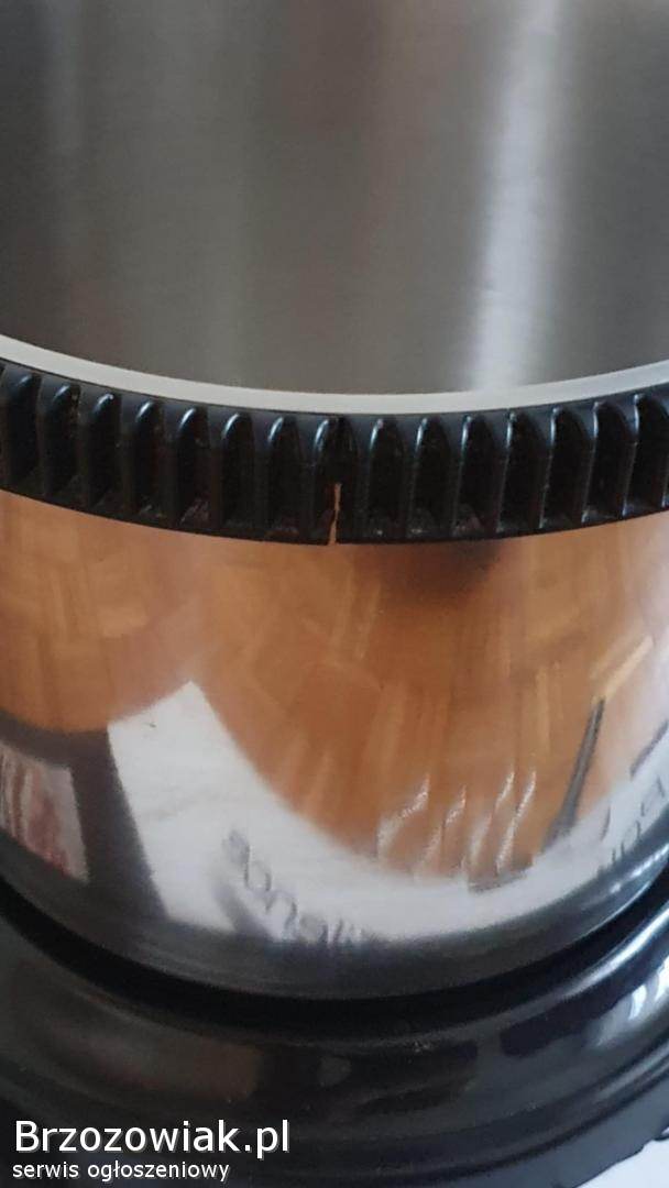Misa miksera ma pęknięty element plastikowy, który został naprawiony i nie przeszkadza to w żaden sposób w użytkowaniu.