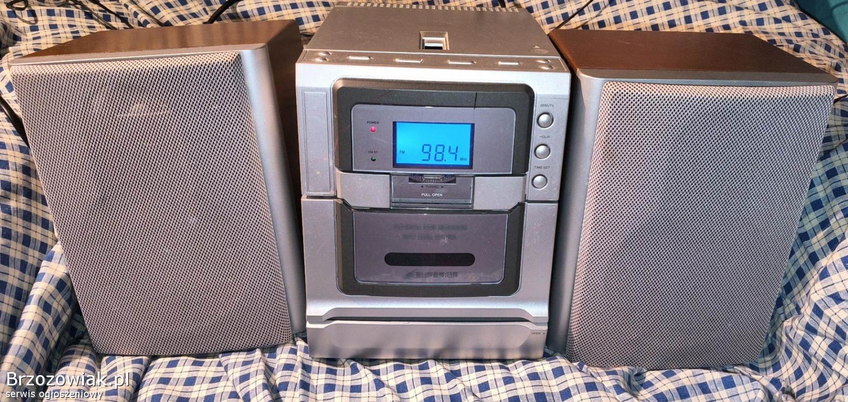Działa na pewno radio, CD kręci ale raczej do przeczyszczenia, magnetofon nie działa