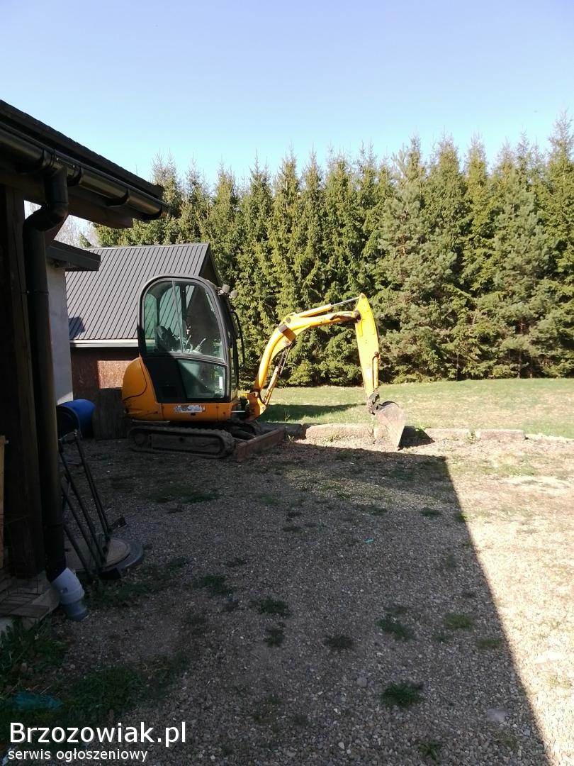 MalinówkaUsługi mini koparką JCB 1880 maszyna silna operator sprytny wszystko wykopię wyrówna zasypie i nawet ubije skoczkiem i płyta do kostki 100 kg uklsdanie kostki.
