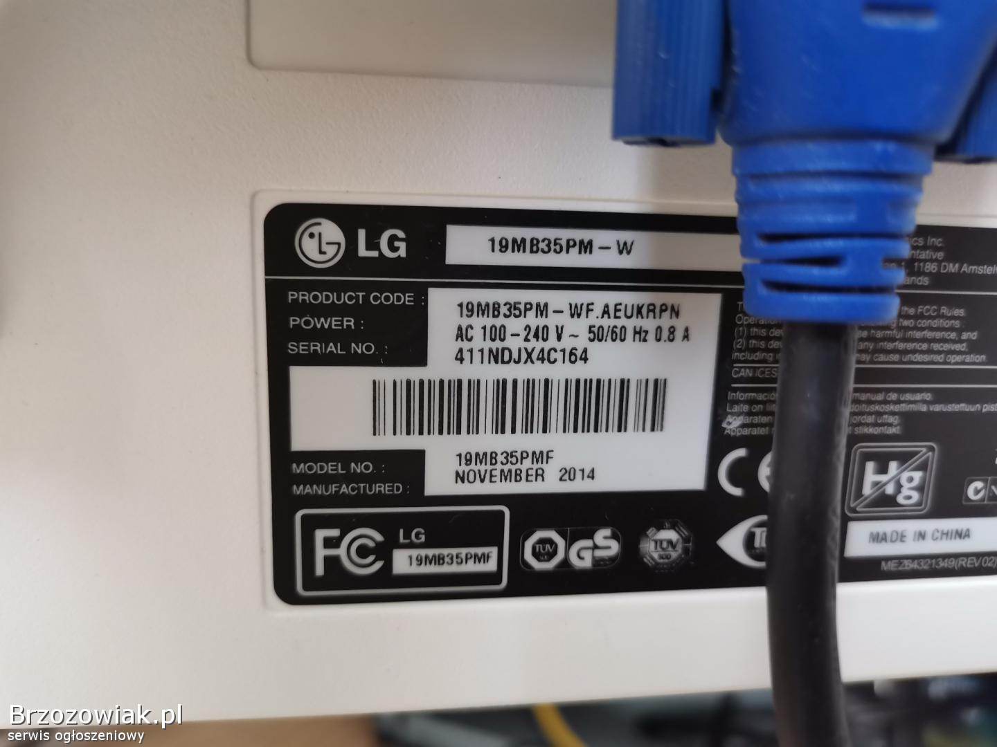 Używany, sprawny bez plam i przebarwień - w zestawie komplet kabli: zasilający, D-Dub, DVI.