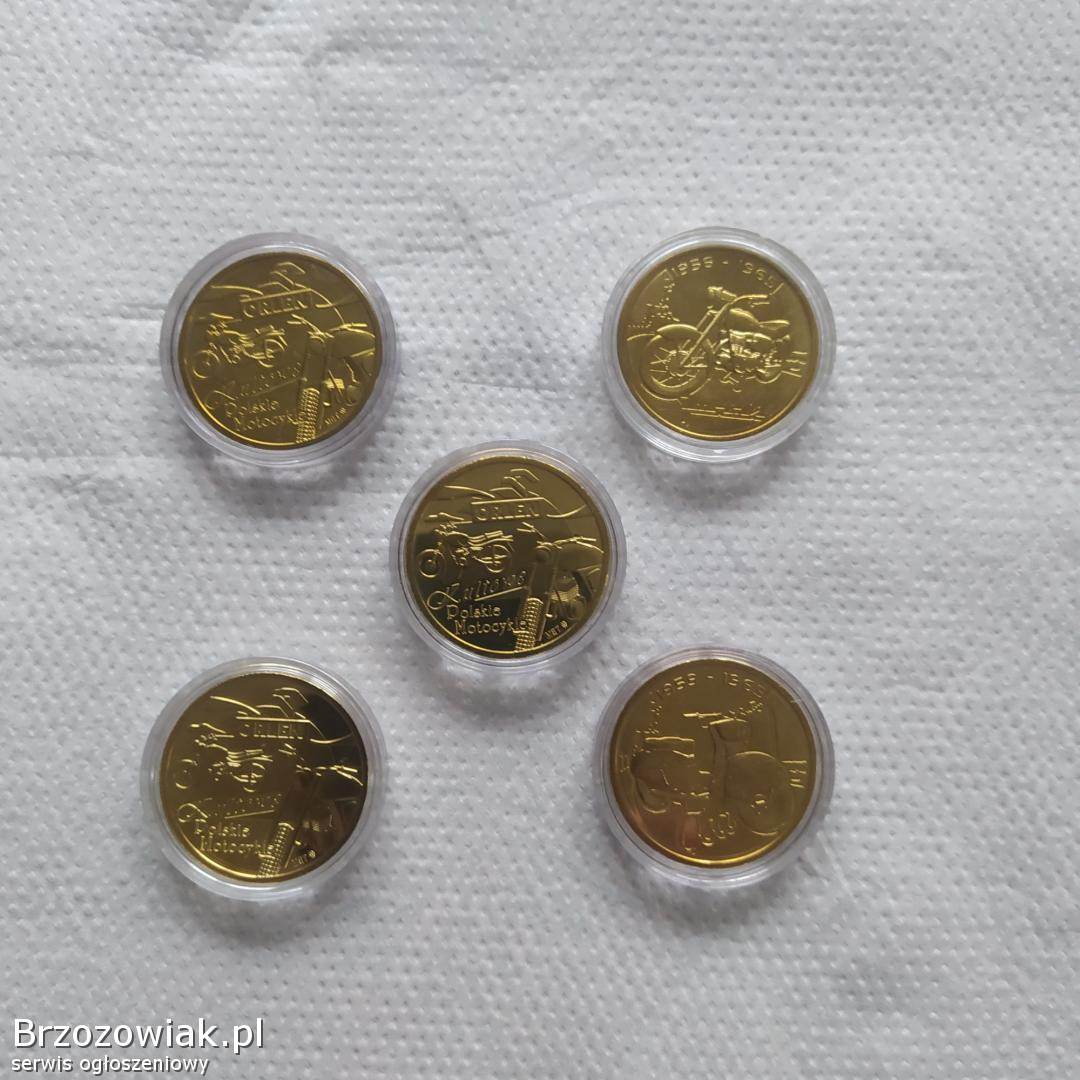 Sprzedam 5 mosiężnych monet wydanych przez Orlen przedstawiających stare polskie kultowe motocykle. Przechowywane są w plastikowych krążkach przez co są zabezpieczone przed zniszczeniem. Cena do uzgodnienia.